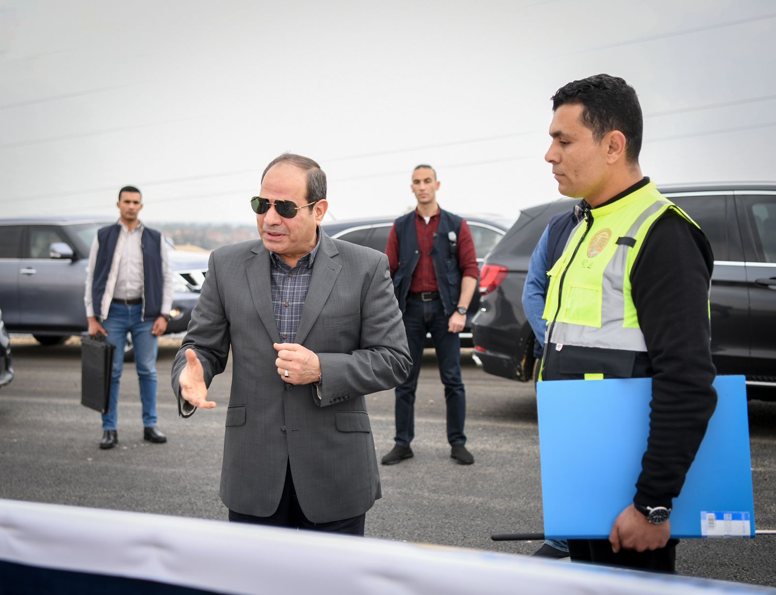 أطلع الرئيس عبد الفتاح السيسي اليوم الجمعة، خلال جولة تفقدية على سير العمل في مشروعات المحاور والطرق بمحافظة الجيزة، في إطار خطة تطوير الطرق الشاملة بالقاهرة الكبرى، التي تهدف لمواجهة أزمة التكدس السكاني والاختناق المروري، في ضوء ما كانت الدراسات المرورية العالمية المتخصصة قد أظهرته من توجه متوسط سرعة السيارات والمركبات على الطرق للانخفاض الشديد، بما يترتب على ذلك من أعباء جسيمة على المواطنين، وإعاقة لنمو النشاط الاقتصادي بجميع صوره، مما يُترجم إلى خسائر اقتصادية هائلة، تعمل الدولة على الحد منها وتحويلها إلى دفعة قوية وأساس متماسك للتنمية الشاملة، التي ترفع مستوى معيشة المواطنين وجودة الحياة في مصر.