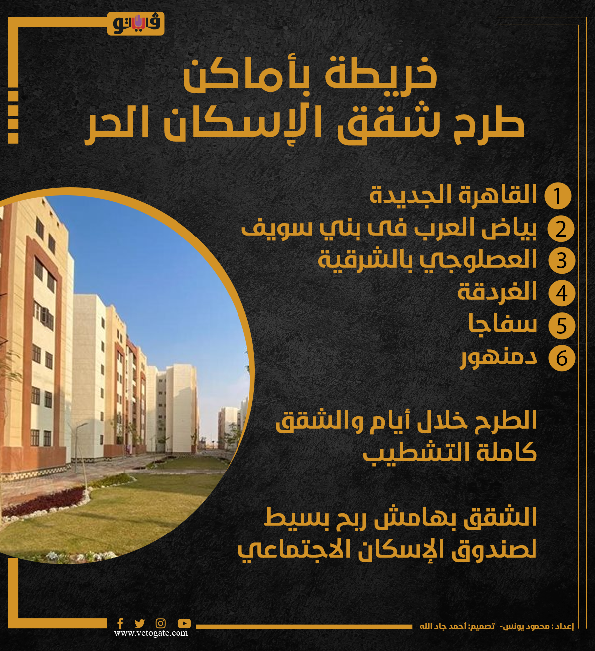 وقالت مى عبد الحميد الرئيس التنفيذي لصندوق الإسكان الاجتماعي والتمويل العقاري إن أن الطرح سيكون فى عدد من المحافظات والمدن الجديدة وهى القاهرة الجديدة بمحافظة القاهرة، وبياض العرب بمحافظة بني سويف، والعصلوجي بمركز الزقازيق بمحافظة الشرقية، والغردقة بمحافظة البحر الأحمر، وسفاجا بمحافظة البحر الأحمر، ودمنهور بمحافظة البحيرة.