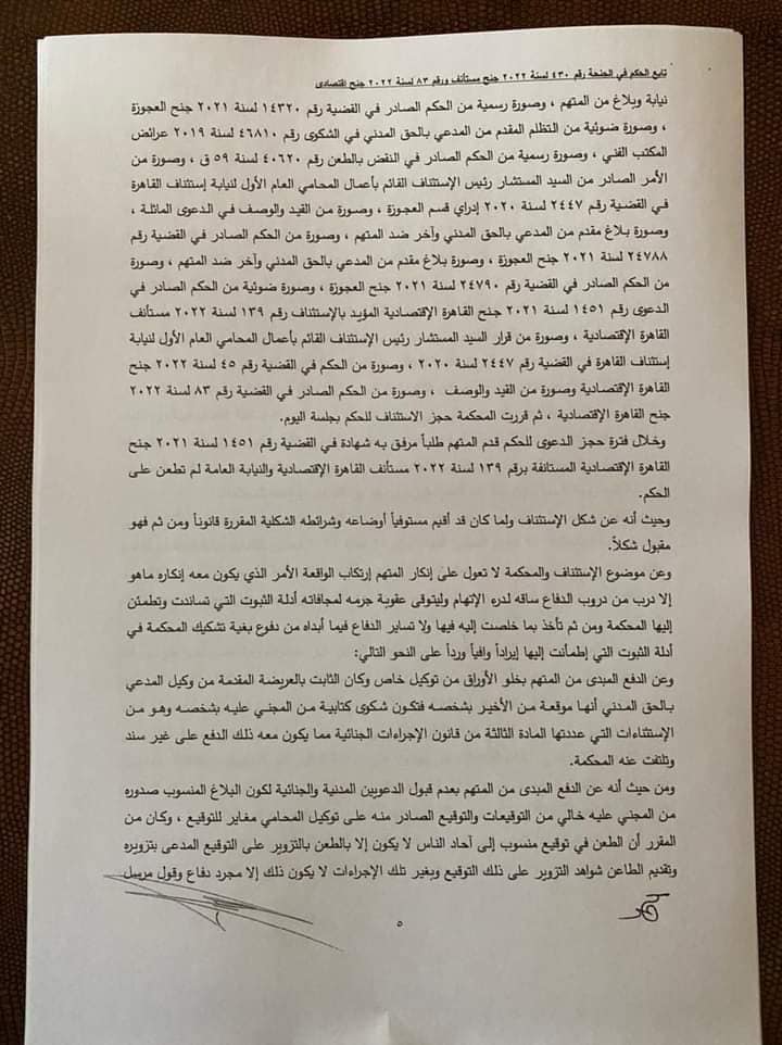 وفي 17 يوليو الماضي قضت محكمة مستأنف القاهرة الاقتصادية بقبول استئناف مرتضى منصور رئيس نادي الزمالك على حكم حبسه سنة ووقف تنفيذ الحكم وفرض غرامة ١٠ آلاف جنيه في دعوى أخرى حملت رقم ٤٥ لسنة ٢٢ والمقامة ضده من الكابتن محمود الخطيب رئيس نادي الأهلي.