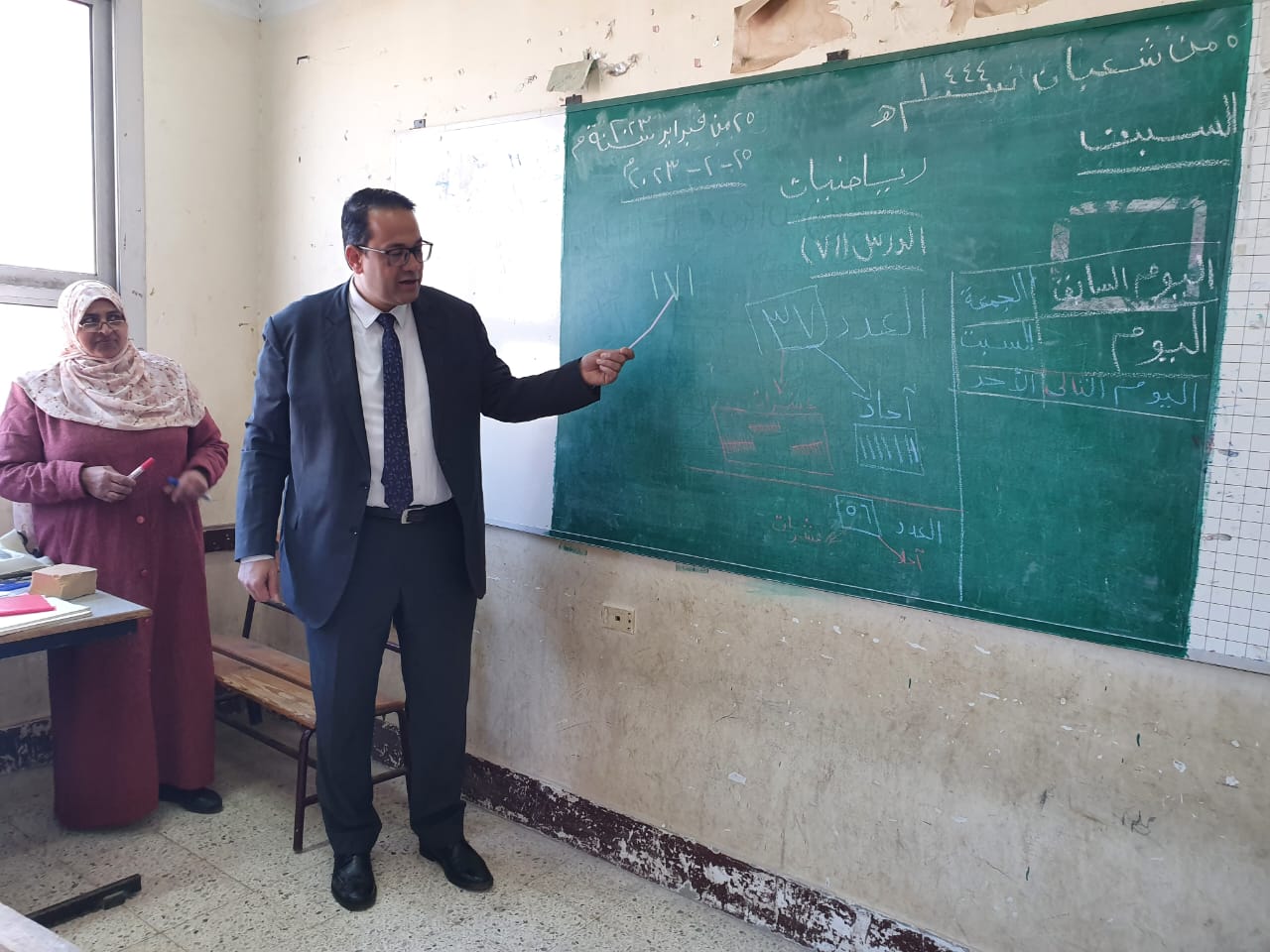 حيث قام بمتابعة عدد من الفصول والمعامل، واطمأن إلى المستوى التحصيلي للطلاب، حيث شهد حصة لمادة الرياضيات، وأشاد بالمجهود الذي يتم داخل الفصول، بالإضافة إلى تفاعل التلاميذ، والمستوى التحصيلي الجيد لهم، والحضور المكثف لطلاب المدرسة، كما اطمأن إلى انضباط العملية التعليمية داخل المدرسة، وممارسة الأنشطة التربوية، ووجه بالاهتمام بنظافة المدرسة من فصول وطرقات ودورات المياه خاصة بعد فترات الفسحة، والاهتمام بالإنارة والتهوية الجيدة للفصول.