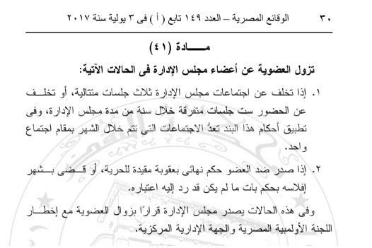 وأضاف المصدر أن الفقرة الثانية من المادة 41 من اللائحة الاسترشادية التي تحكم الزمالك وتعد جزء لا يتجزأ من قانون الرياضة رقم 71 لسنة 2017 والتي تؤكد زوال عضوية أعضاء مجالس إدارات الهيئات الرياضية بصدور حكم نهائي مقيد للحرية، وهو ما ينطبق على مرتضى منصور حيث بات حكم حبسه نهائيا.