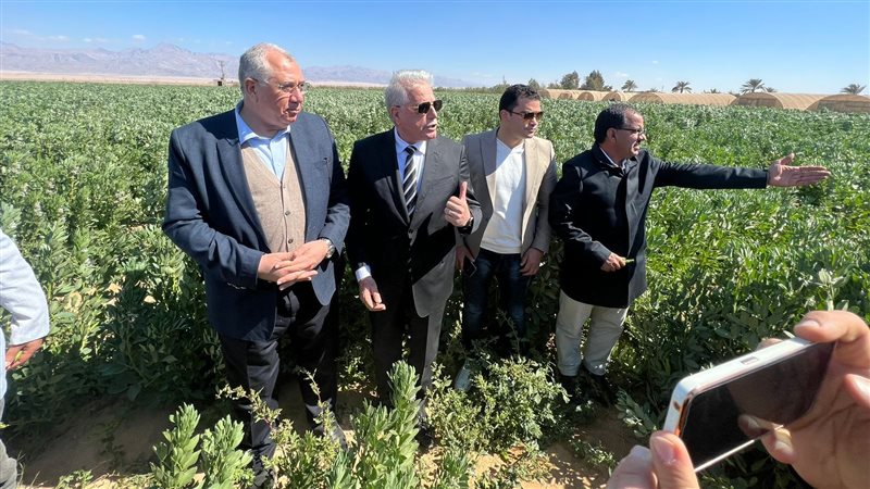 كما قام الوزير والمحافظ بزيارة مزرعة خاصة والمملوكة لأحد المواطنين والمقامة على مساحة 200 فدان بالطور والمزروعة بالمحاصيل والخضر والفاكهة.