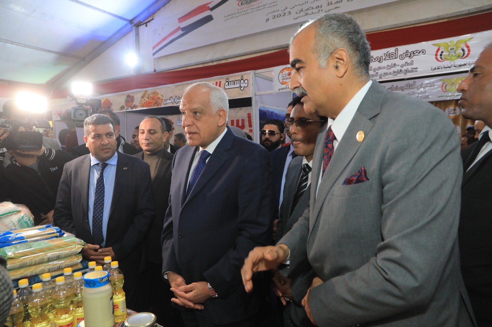 رافق المحافظ خلال الافتتاح اللواء مهندس شاكر يونس السكرتير العام للمحافظة والأستاذ محمد نور السكرتير العام المساعد ومحمد علي المجاهد رئيس مجلس الأعمال اليمني في مصر، والبرلماني مصطفى بكري عضو مجلس النواب ومدير مديرية التموين بالجيزة ورئيس حى الدقى.