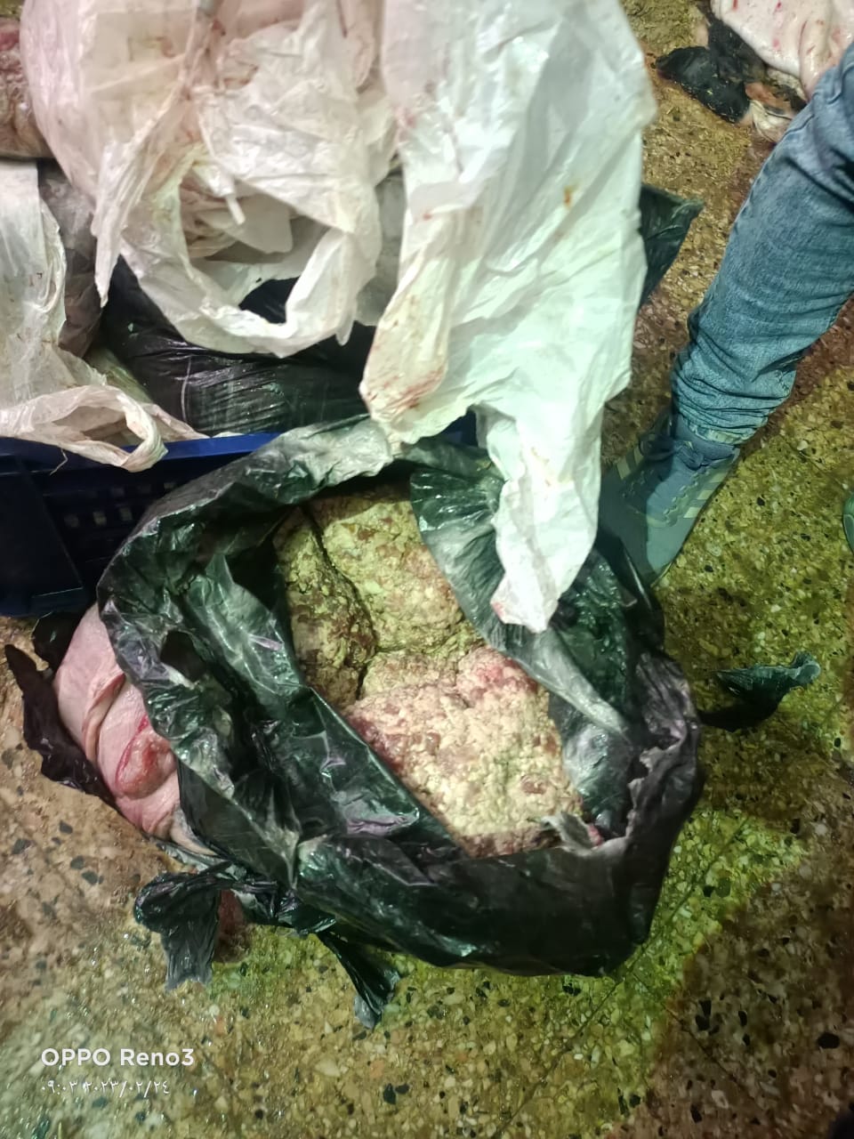 وفي ذلك الإطار تمكن حى العمرانية ومديرية الطب البيطرى وشرطة المرافق من ضبط محل جزارة لإدارته بدون ترخيص بشارع محمد عبد اللاه المتفرع من شارع متولي الشعراوي بالعمرانية الشرقية وبحوزته 372 كجم لحوم فاسدة وغير صالحة للاستهلاك الآدمى ومذبوحه خارج المجازر الحكومية بالإضافة إلى حيازة مصنعات لحوم وكبدة مجهولة المصدر.