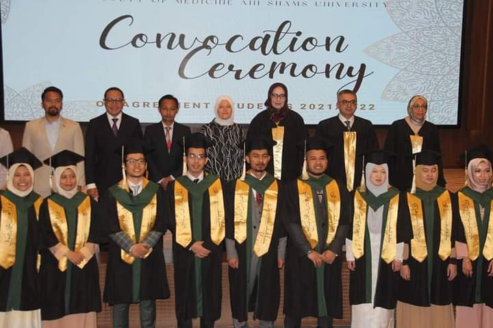 احتفلت كلية الطب جامعة عين شمس، بتخريج الدفعة التاسعة من الطلاب الماليزيين، والبالغ عددهم ٢٠ طالبًا وطالبة، تبعًا للاتفاقية المبرمة بين كلية الطب وماليزيا وذلك تحت رعاية الدكتور محمود المتيني رئيس جامعة عين شمس، الدكتور عبد الفتاح سعود نائب رئيس الجامعة لشئون التعليم والطلاب، وعلى الأنور عميد كلية الطب ورئيس مجلس إدارة المستشفيات الجامعية.