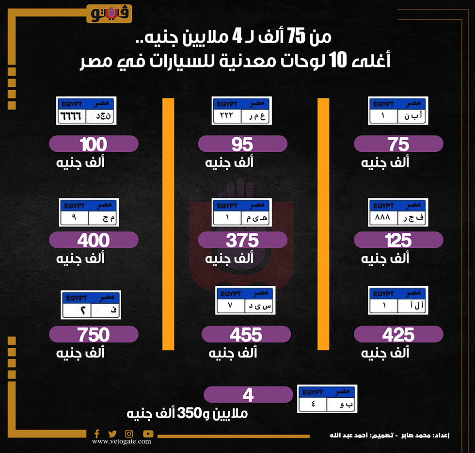 من 75 ألف لـ 4 ملايين جنيه.. أغلى 10 لوحات معدنية للسيارات في مصر (إنفوجراف) الأحد 26/فبراير/2023 - 07:21 م 2/26/2023 7:21:18 PM لوحات مميزة، فيتو محمد صابر شارك طباعة 18 حجم الخط شارك طباعة لوحتك لوحتك باسمك طلب لوحة سيارة مميزة أغلى نمرة عربية لوحات معدنية مميزة للبيع شراء لوحات سيارات مميزة في مصر صندوق تحيا مصر لوحات سيارات نمر مميزة وزارة الداخلية موقع اللوحات المميزة