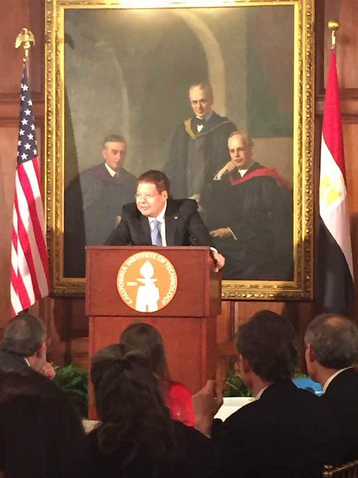 وأكمل في حديثه عن احتفال جامعة “كالتك” بالعالم الراحل وقال: “في مثل هذا اليوم قبل سبع سنوات كانت جامعة كالتك في كاليفورنيا تحتفل بعيد ميلاد الدكتور احمد زويل وبلوغه سن السبعين وكذا مرور ٤٠ سنة على انضمامه الى الجامعة التي حصل من خلالها على نوبل”.