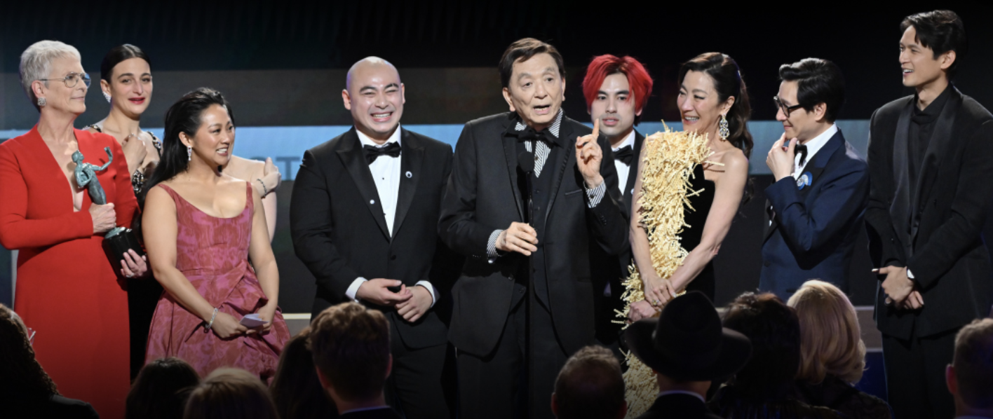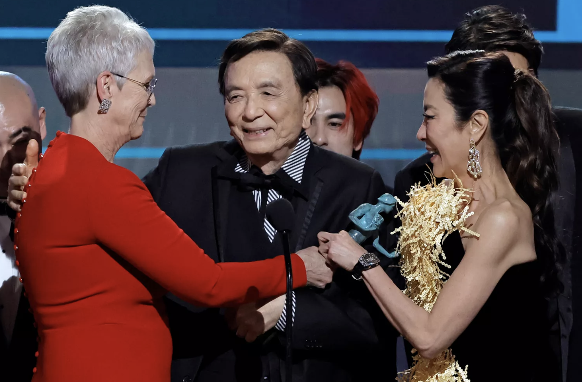 SAG Awards، طاقم فيلم Everything Everywhere All at Once يقدمون جائزتهم لـ جيمس هونج (فيديو)