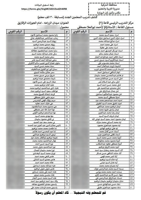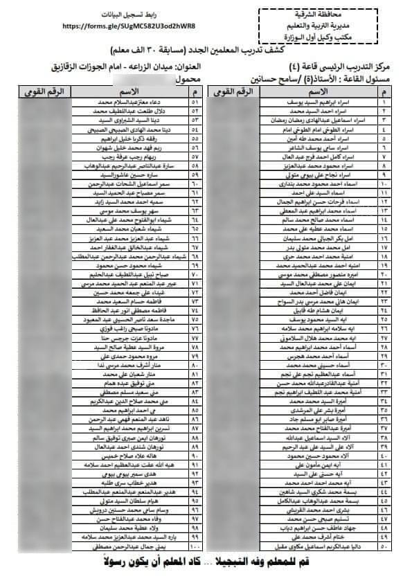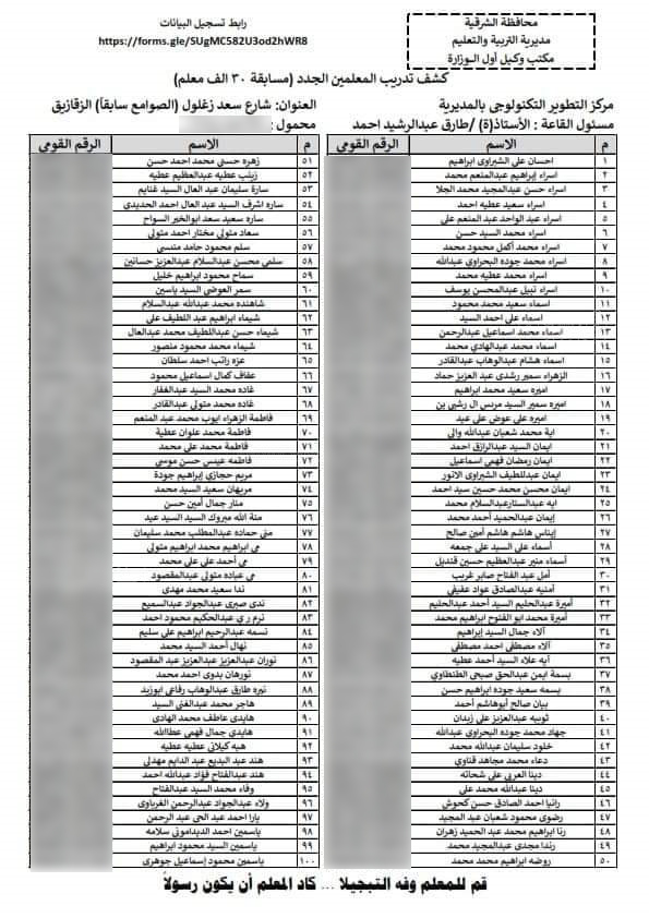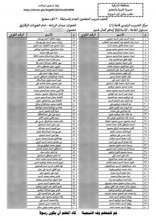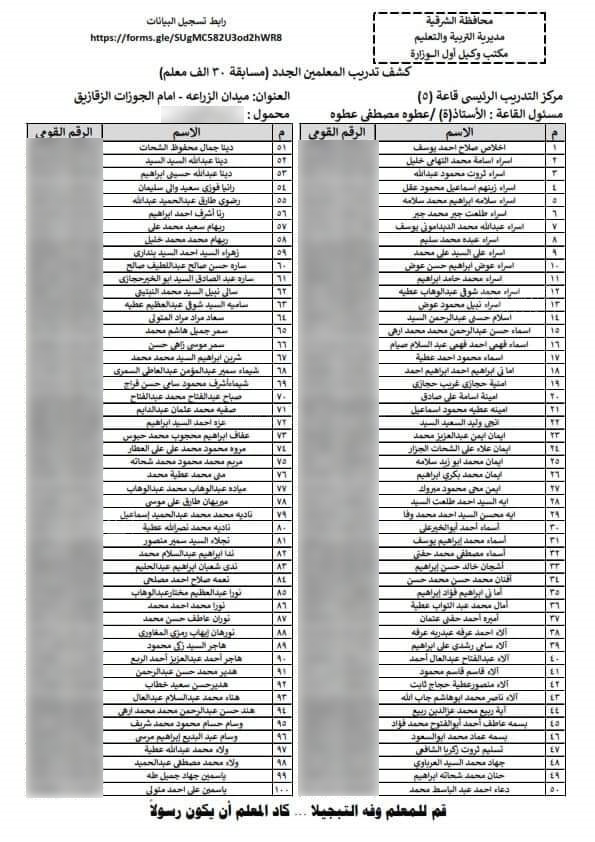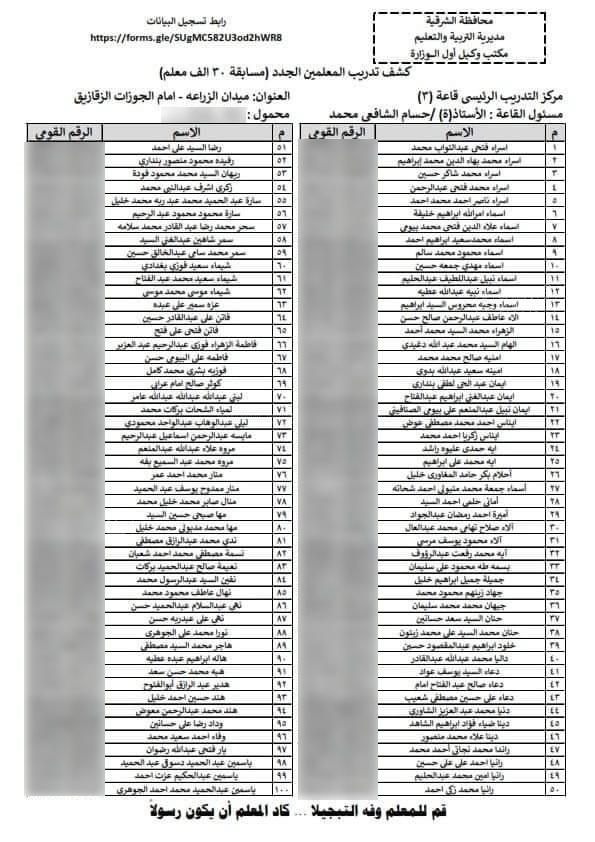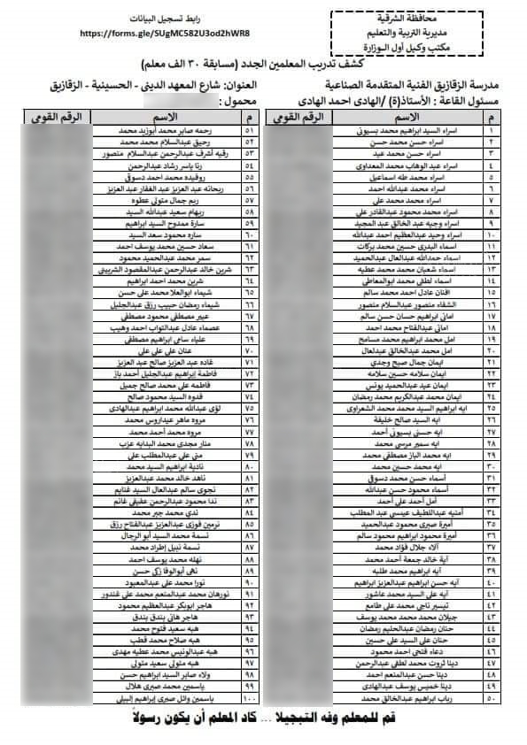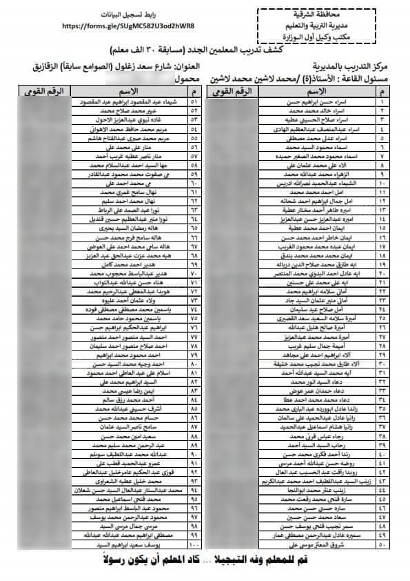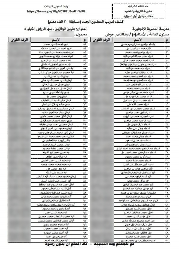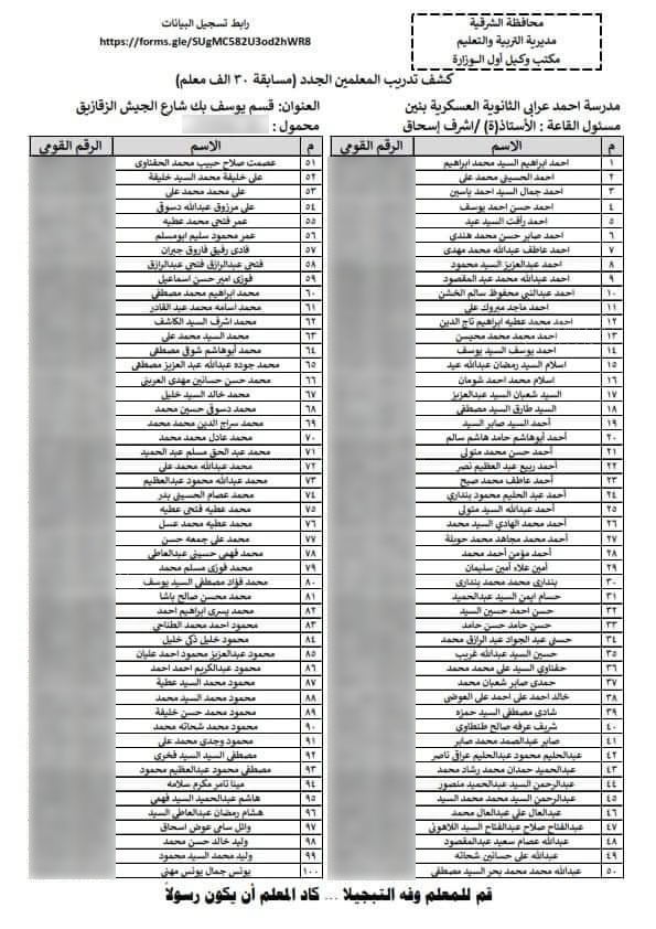 كشوف أسماء المقبولين في مسابقة 30 ألف معلم محافظة الشرقية
