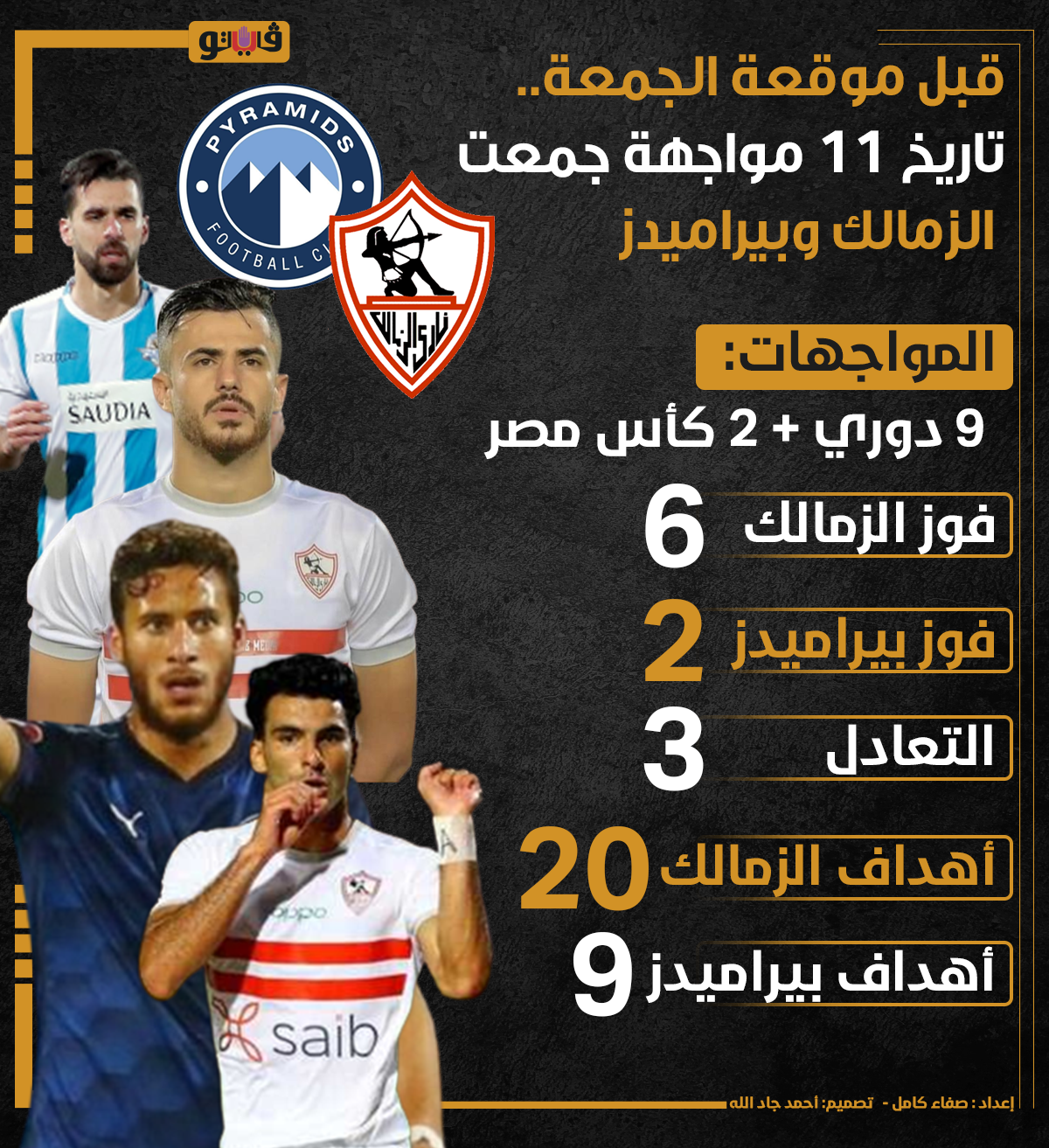 الزمالك وبيراميدز، ويتفوق نادي الزمالك على فريق بيراميدز بتاريخ مواجهات الفريقين حيث التقيا الزمالك وبيراميدز، حيث فاز الأبيض في 6 مباريات، منها 5 مباريات بالدوري الممتاز ومباراة بكاس مصر أما بيراميدز ففاز في مباراتين واحدة في الدوري وأخري في كاس، فيما تعادلا في 3 مباريات.