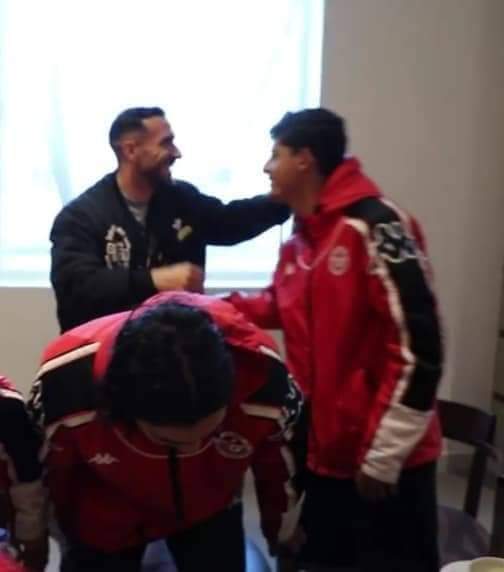 وحرص معلول علي مصافحة زميله محمد الضاوي كريستو لاعب الأهلي المتواجد ضمن صفوف منتخب تونس للشباب.