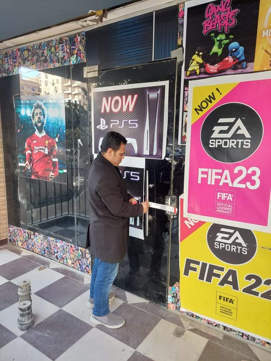 كما تم غلق وتشميع محل بلايستيشن بالعنوان ١١ شارع إبراهيم نوار م٦ لإدارته بدون ترخيص، بالإضافة إلى غلق وتشميع محل بلايستيشن بالعنوان عمارة ٥ شارع إبراهيم نوار م٦ لإدارته بدون ترخيص.