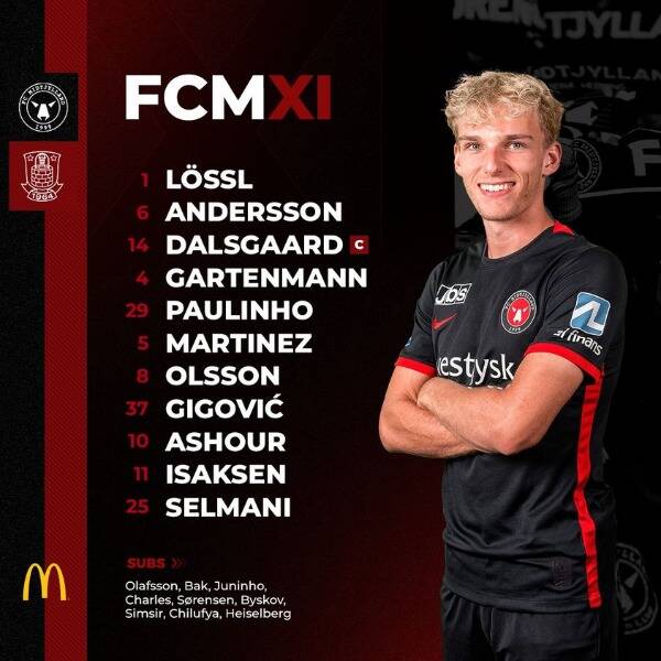 في المقابل، يجلس الدولي التونسي أنيس بن سليمان بديلا في تشكيلة فريقه بروندبي بمباراة الليلة.