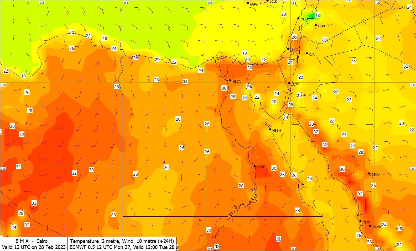 وأشارت الهيئة، إلى أنه من المتوقع أن يسود طقس مائل للحرارة على شمال البلاد حتى القاهرة الكبرى، كما كشفت أنه سيكون هناك ارتفاع تدريجي في درجات الحرارة بقيم تتراوح من 3 لـ 5 درجة مئوية، وتسجل درجة الحرارة لأول مرة 32 درجة مئوية.