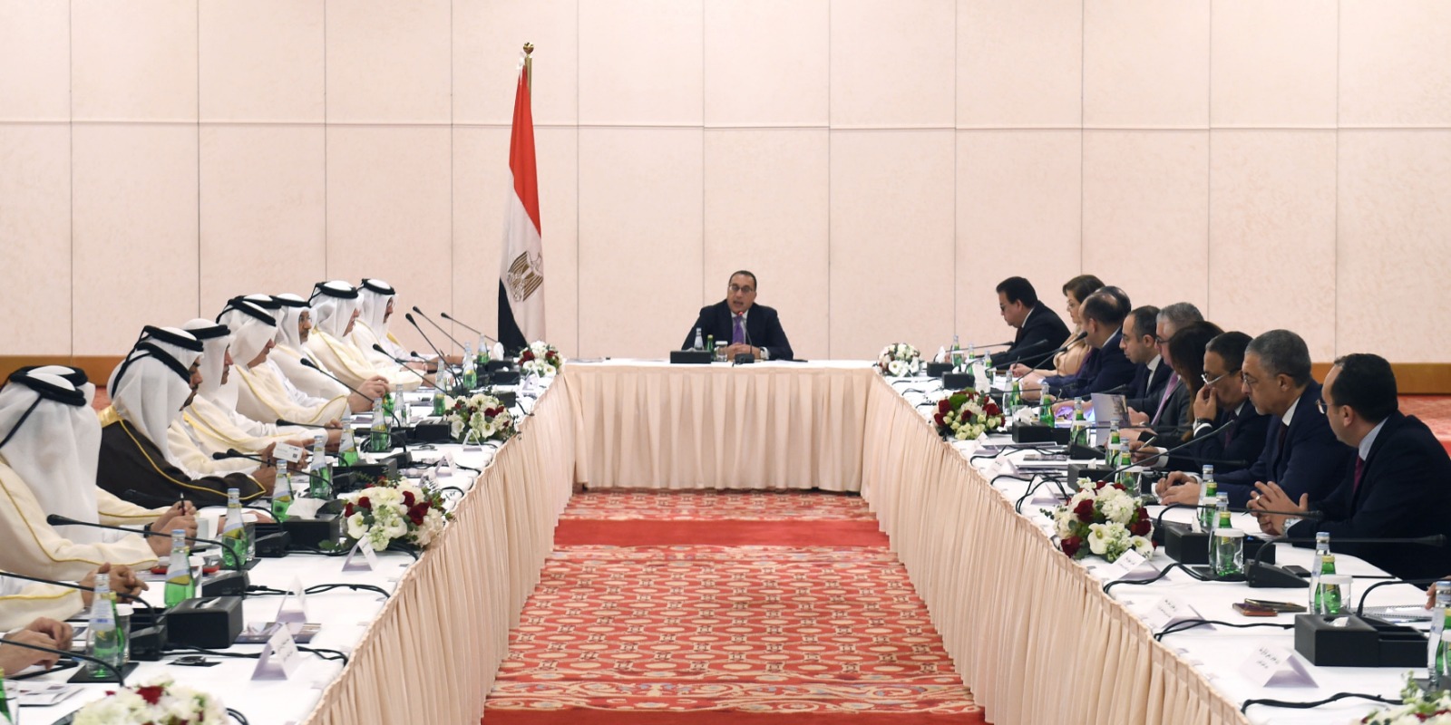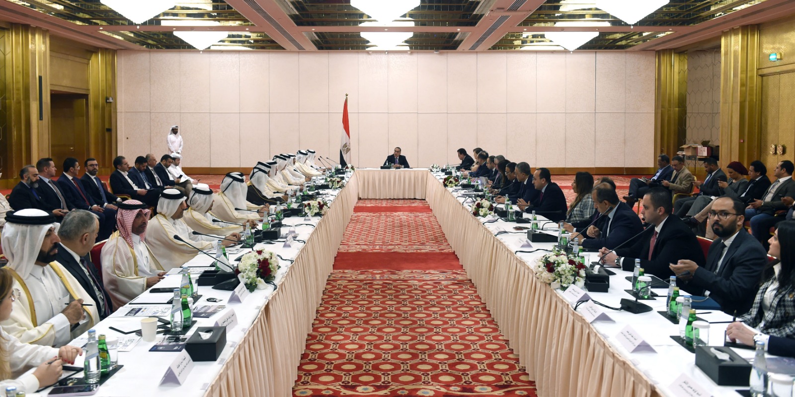 وفي مستهل الاجتماع، وجه رئيس مجلس الوزراء الشكر لدولة قطر على حفاوة الاستقبال التي لمسها وأعضاء الوفد الرسمي في هذه الزيارة الرسمية، التي تعدُ الأولى لرئيس وزراء مصري للدوحة منذ سنوات، كما رحب بالحضور من المسئولين ورجال الأعمال القطريين.