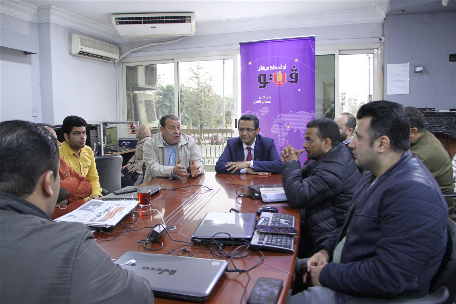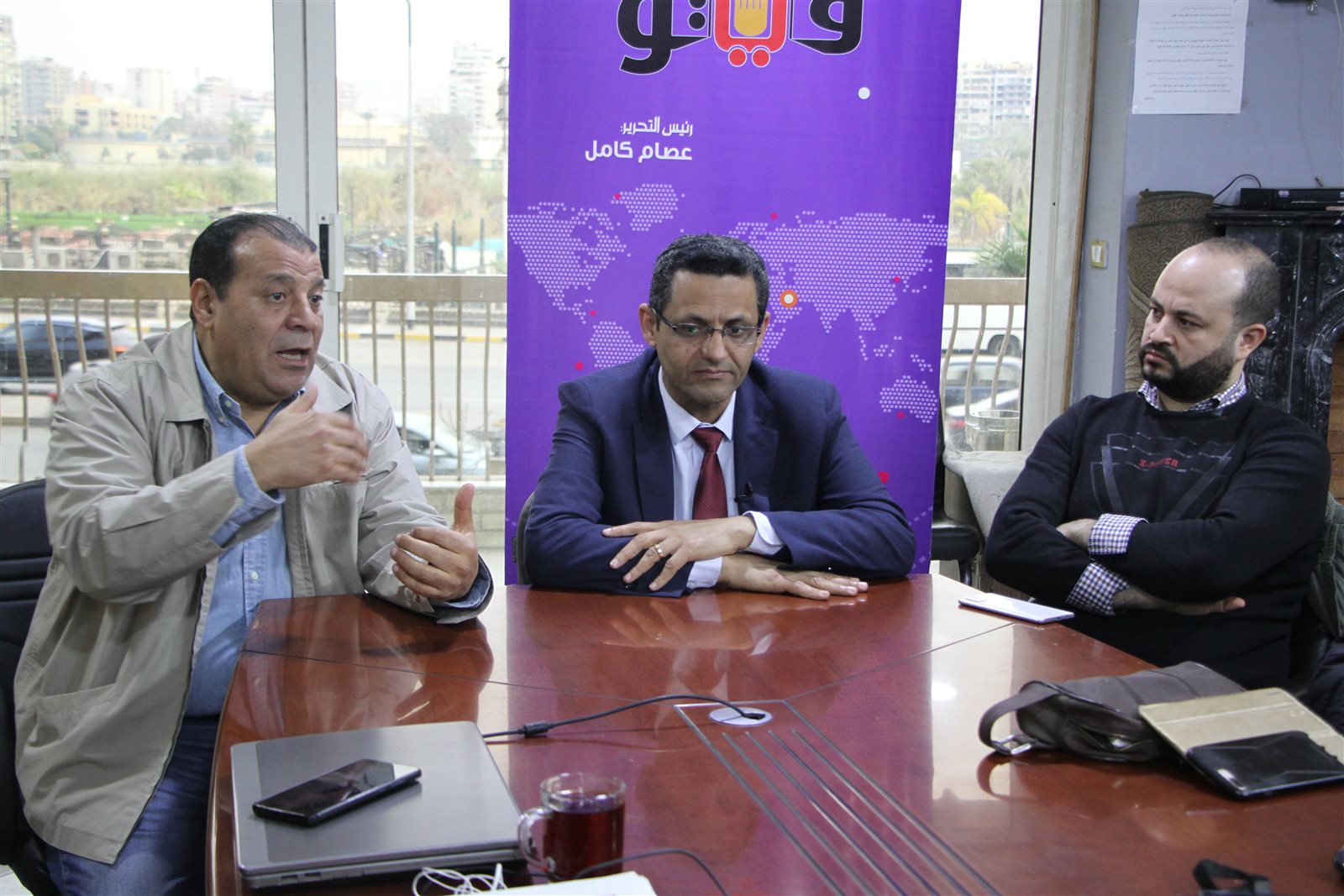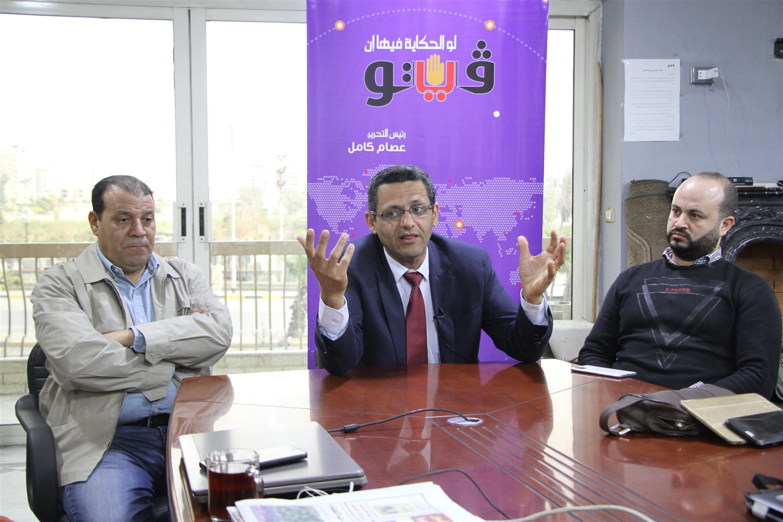 "فيتو" استضافت البلشى فى مقرها زائرا ومتحدثا عن برنامجه قبل انتخابات التجديد النصفى لنقابة الصحفيين التى ستجرى الجمعة 3 مارس المقبل، فى حوار أداره الكاتب الصحفى عصام كامل رئيس التحرير بحضور نواب ومساعدى رئيس التحرير ورؤساء الاقسام وعدد من المحررين، وجاء الحوار على النحو التالى: