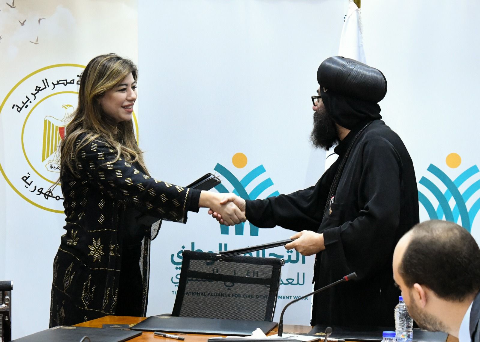 وقع البروتوكول ممثلًا عن التحالف الوطنى للعمل الأهلي التنموي الدكتورة نهي طلعت أمين سر التحالف والأنبا يوليوس أسقف الخدمات العامة والاجتماعية والمسكونية