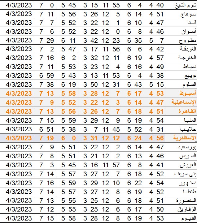 مواقيت الصلاة اليوم بتوقيت الإسكندرية