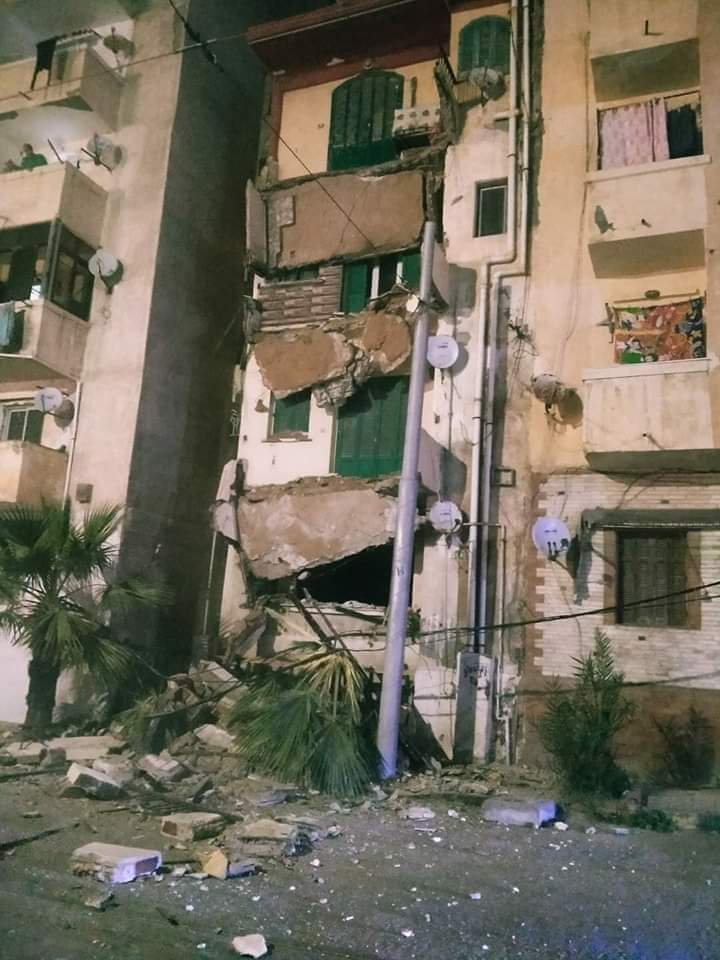 انهيار شرفات عقار وتساقط أجزاء من منزلين بالإسكندرية