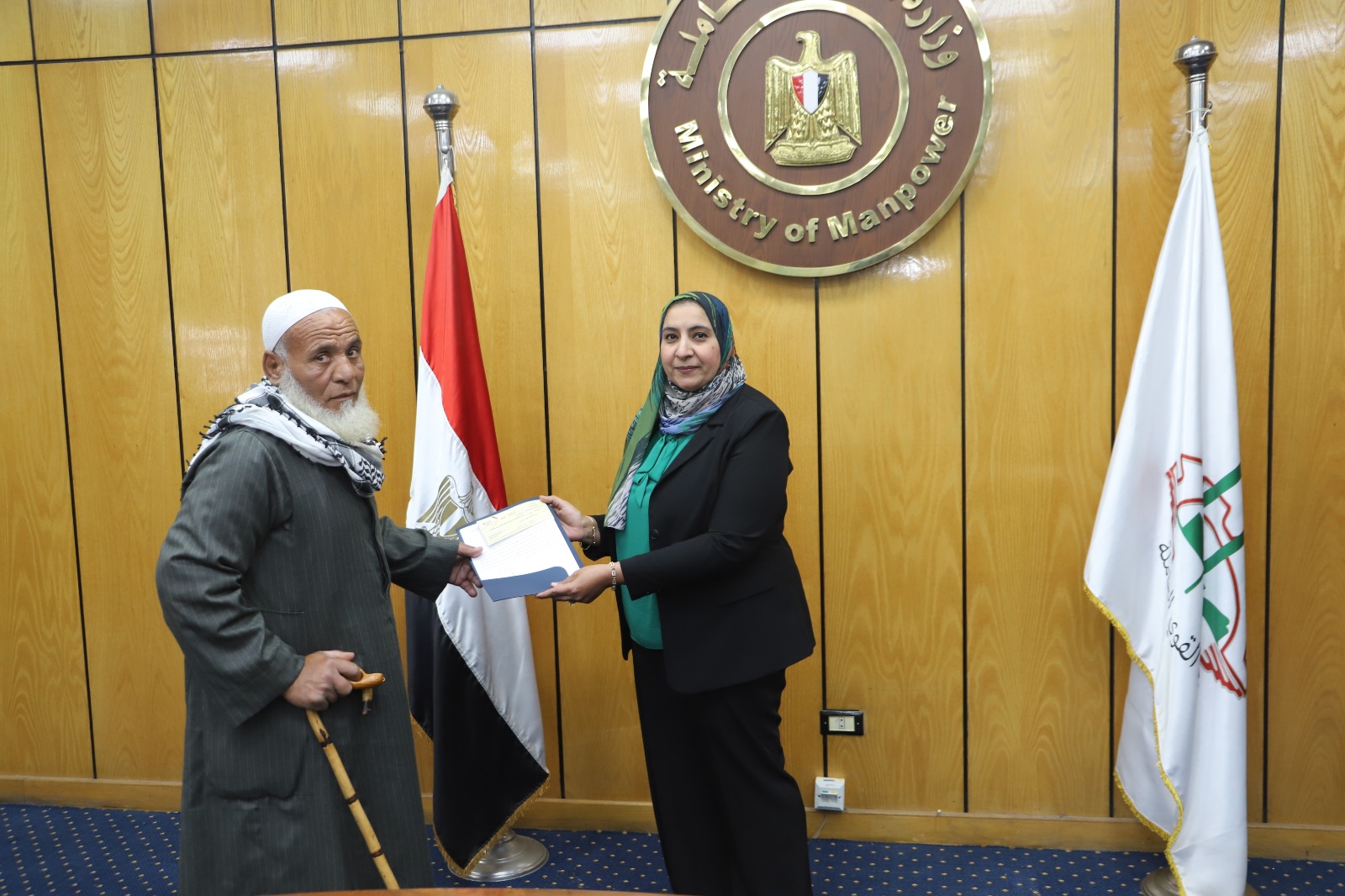 وقال بيان صحفي أن رئيس الإدارة المركزية لشئون مكتب الوزير منال عبد العزيز، قامت بتسليم الشهادات نيابة عن الوزير حسن شحاتة وزير القوى العاملة.