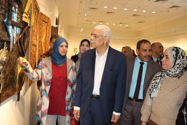 رئيس جامعة المنوفية يفتتح معرض رؤى تشكيلية لكلية التربية النوعية