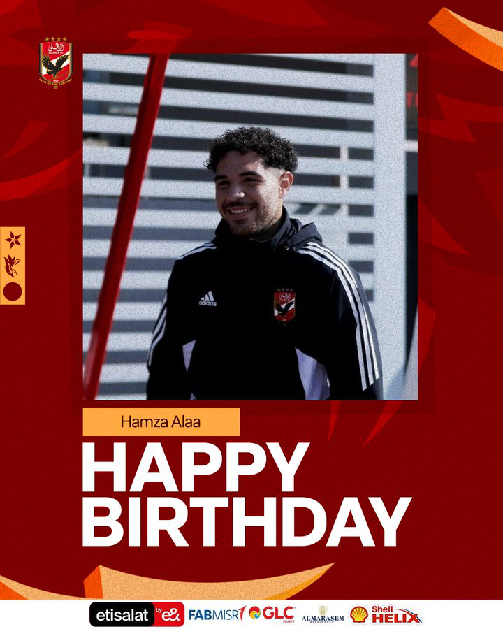 الأهلى، حرص الحساب الرسمي للنادي الأهلي عبر موقع التواصل الاجتماعي فيس بوك على الاحتفال بعيد ميلاد حمزة علاء حارس مرمى الفريق الأحمر الذي احتفل بعيد ميلاده الـ 22 البوم فهو من مواليد 1 مارس عام 2001.