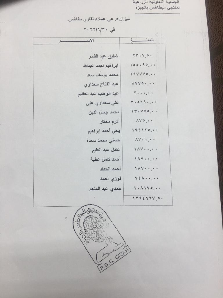 وفي السياق ذاته استمعت مديرية الزراعة بالجيزة لأقوال أعضاء هيئة المكتب لجمعية منتجي البطاطس بالجيزة في التحقيق الذي فتحته المديرية حول ما جاء من مخالفات بحق رئيس الجمعية سعيد ابو شميله وهم عادل عبد العليم أمين صندوق الجمعية، وناصر أبو اليزيد سكرتير عام الجمعية.