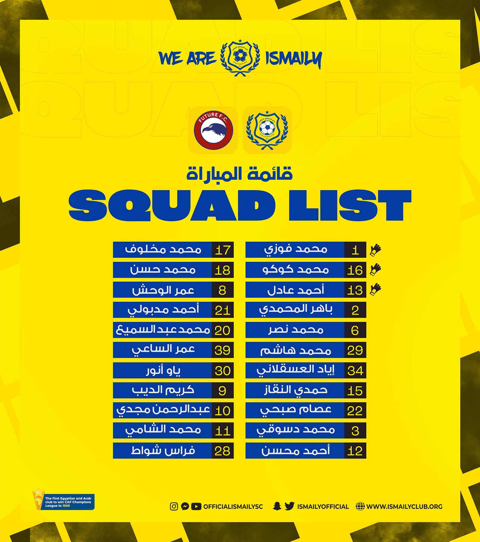 قائمة الإسماعيلي لمواجهة فيوتشر