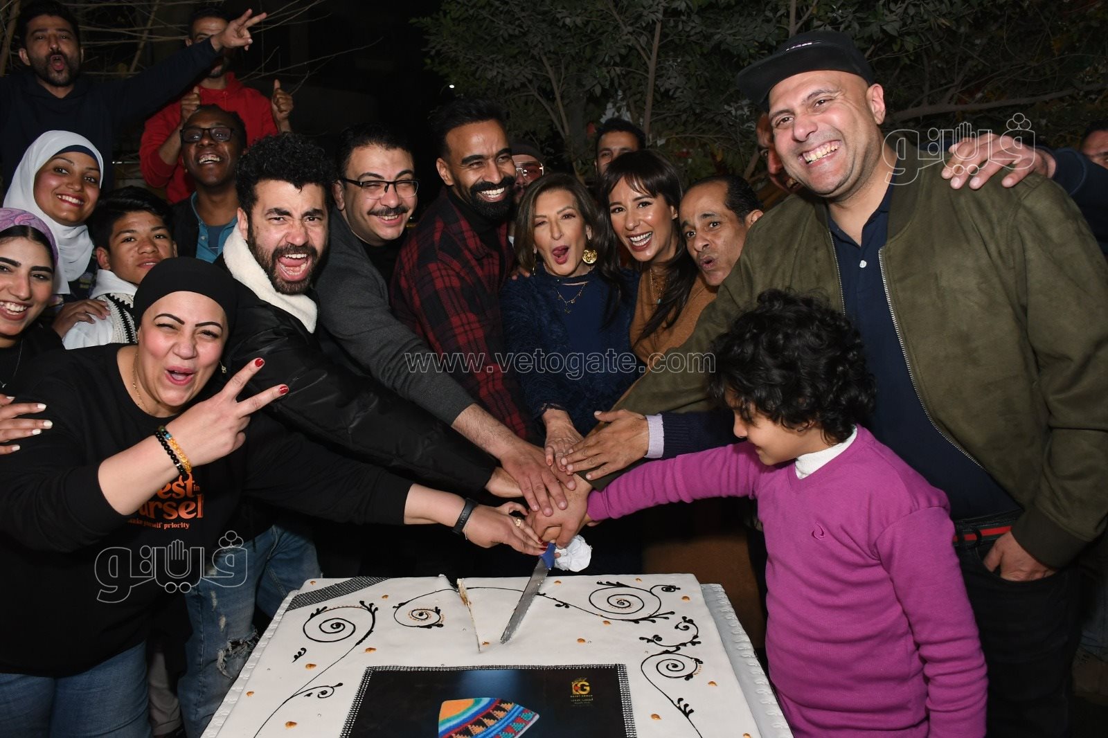 وحضر التصوير والاحتفال الفنان محمود الليثي، توني ماهر، نانسي صلاح، وليد فواز، دنيا ماهر، الفنانة القديرة ليلى عز العرب، المنتج والمؤلف يوسف حسن يوسف، والمخرج رامي رزق الله، في جو مليء بالبهجة والسعادة بينهم حول "تورتة الاحتفال" التي تحمل اسم الفيلم، ومن المقرر عرضه بموسم أفلام عيد الأضحى.