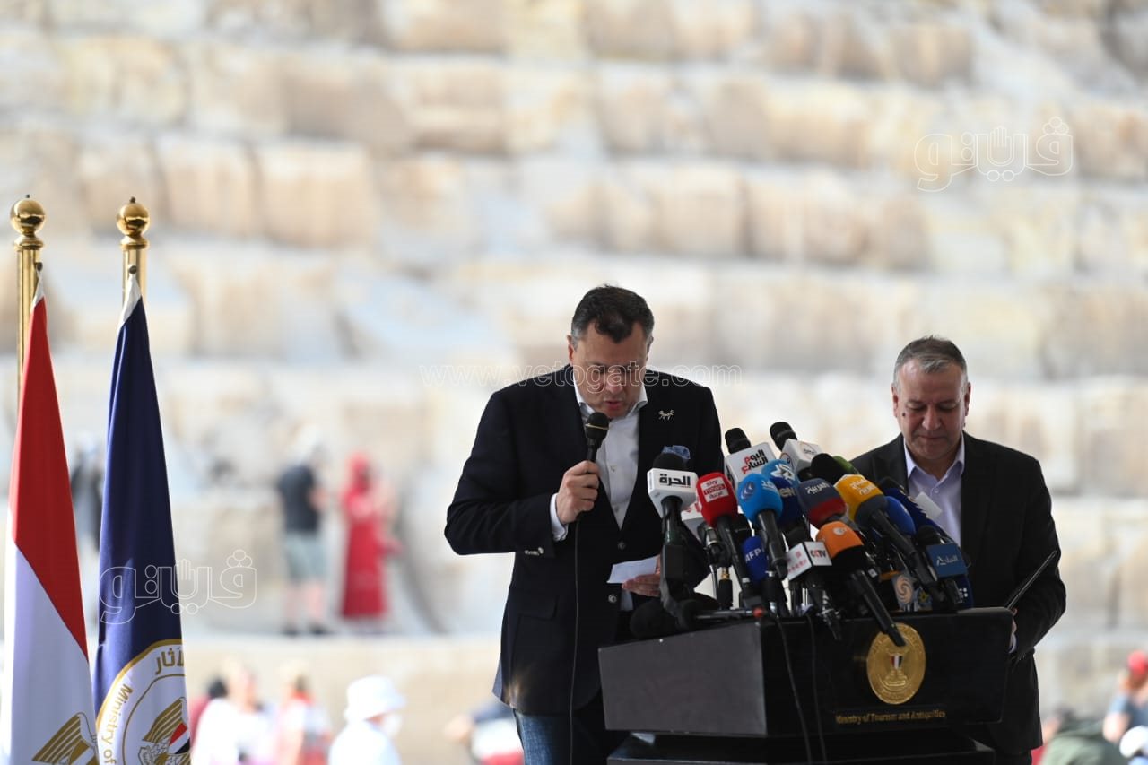 وحرص أحمد عيسى وزير السياحة والآثار، على التقاط صور تذكارية مع البعثة العلمية برئاسة الدكتور زاهي حواس وزير السياحة والآثار والدكتور مصطفى وزيري الأمين العام للمجلس الأعلى للآثار ومدير منطقة آثار الأهرامات.