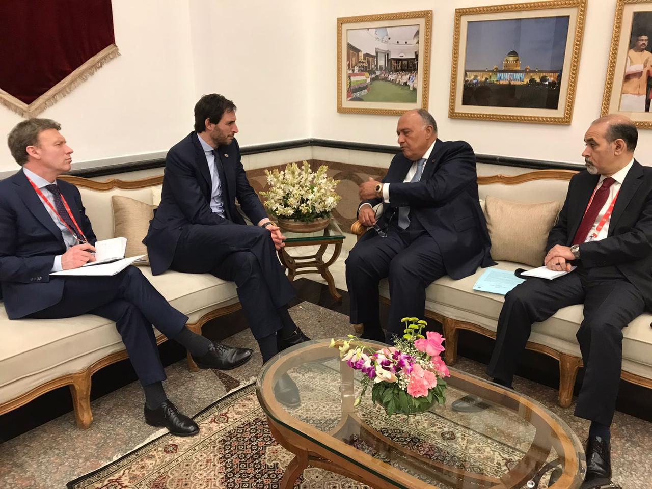 التقى وزير الخارجية سامح شكري، وزير الخارجية الهولندي " فوبكه هوكسترا" على هامش أعمال اجتماع وزراء خارجية مجموعة العشرين بنيودلهي.