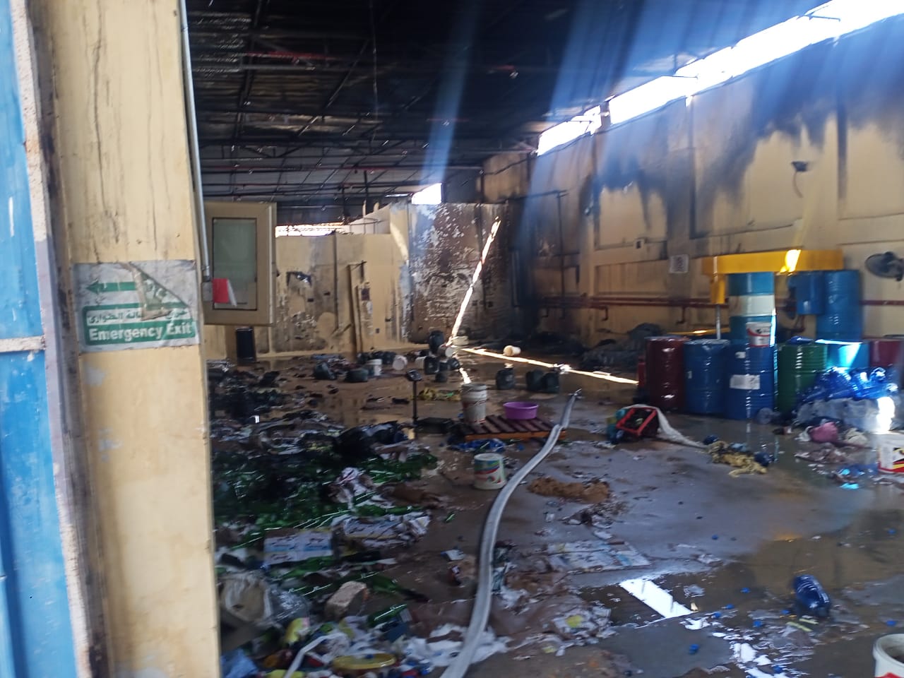 إخماد حريق نشب داخل مصنع تنر في منشأة القناطر (صور)