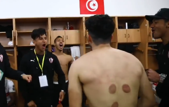 وشهدت احتفالات لاعبى نادى الزمالك داخل غرفة خلع الملابس عقب مباراة في دوري أبطال أفريقيا ظهور أحمد سيد زيزو وعلى ظهره آثار الحجامة.