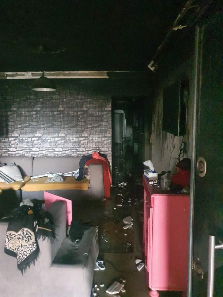 وتم التواصل العاجل مع الحماية المدنية، وأجهزة المرافق، حيث تبين من المعاينة أن الحريق اندلع على إثر إلقاء ولاعة مما أدى لاشتعال بعض الأثاث.