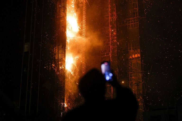 إجلاء العشرات بمنطقة حريق ناطحة سحاب هونج كونج، والنيران تمتد لمبان مجاورة (فيديو)