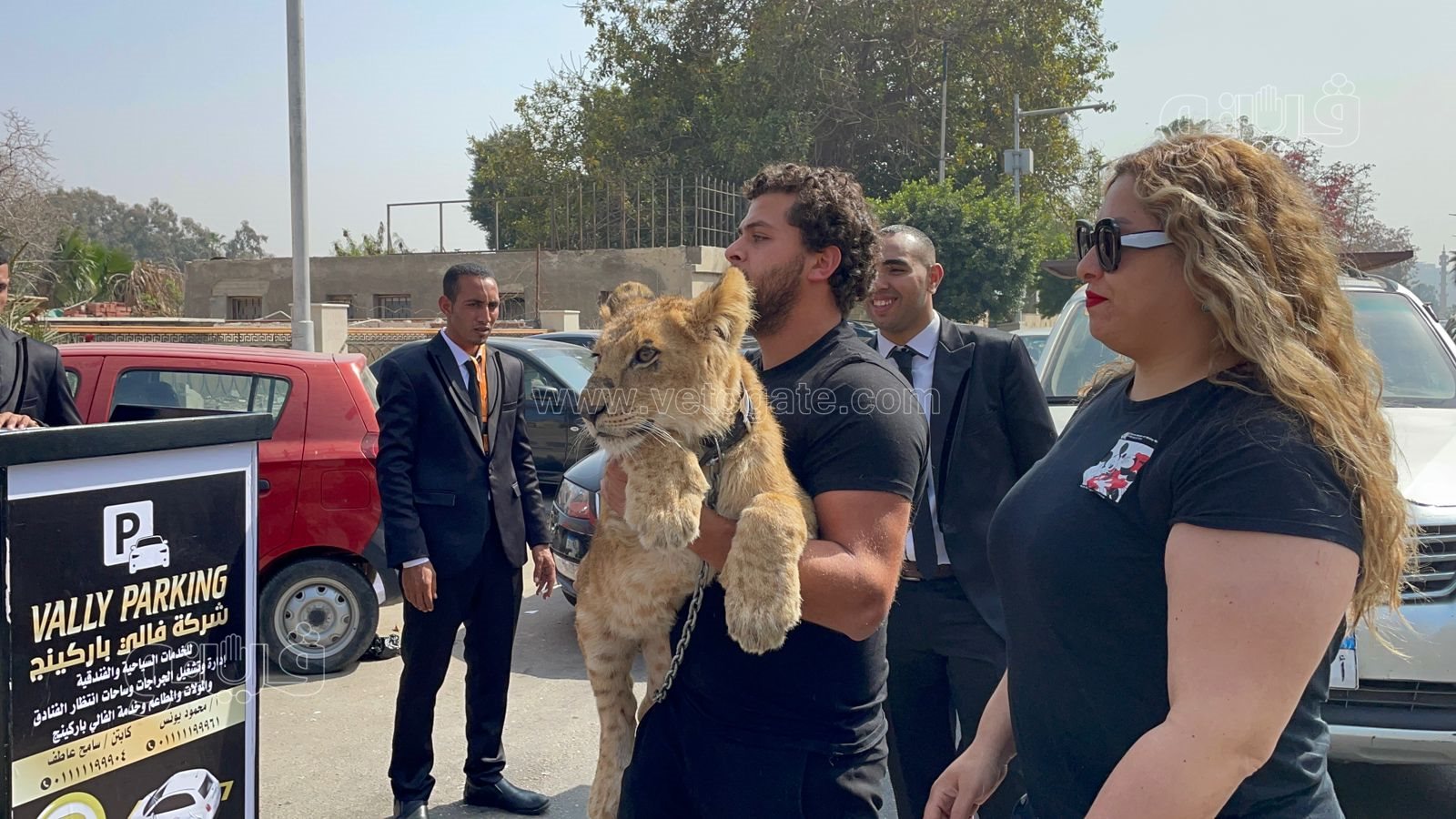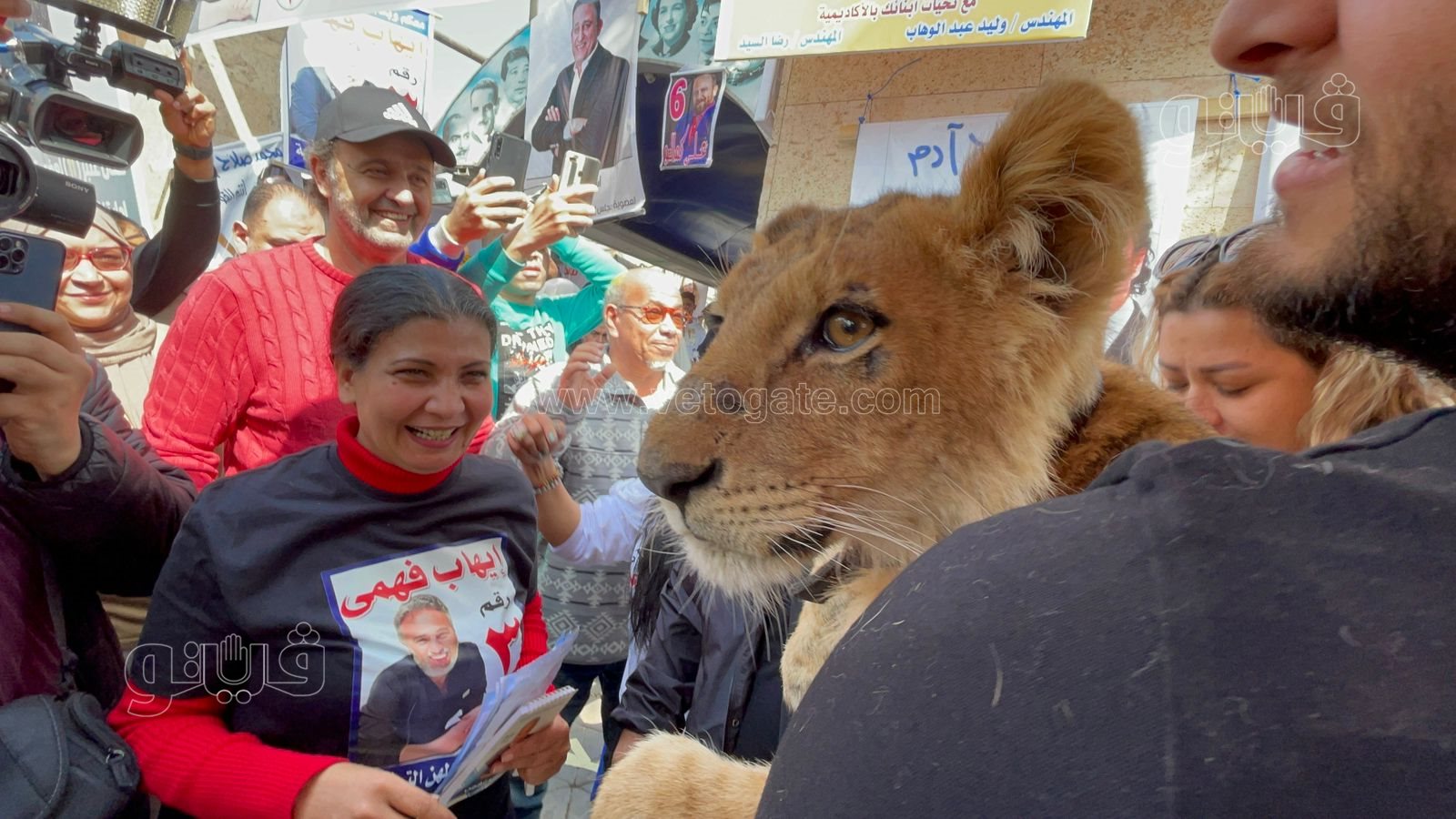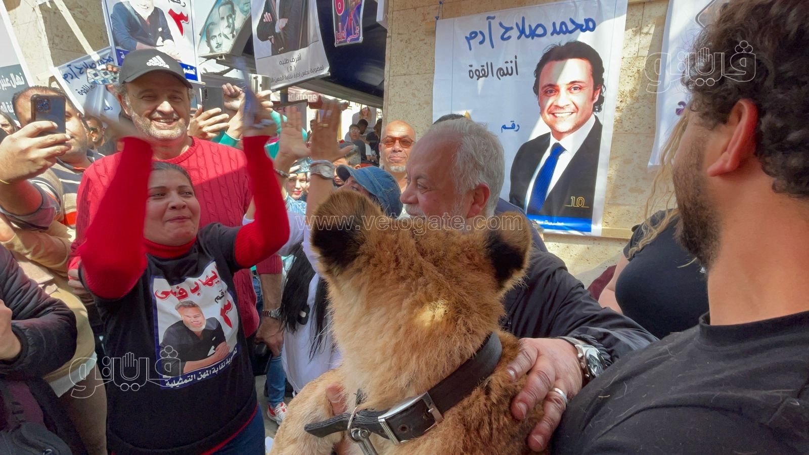 وصل الفنان أشرف الحلو، إلى مقر انتخابات التجديد النصفي لنقابة المهن التمثيلية بنادي النقابة النهري، حاملا أسد صغير.