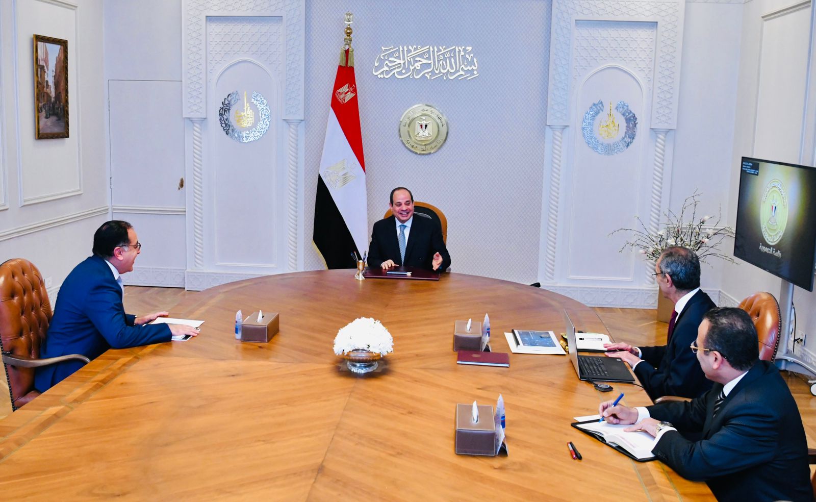 كما اجتمع الرئيس عبد الفتاح السيسي مع الدكتور مصطفى مدبولي رئيس مجلس الوزراء، والدكتور عمرو طلعت وزير الاتصالات وتكنولوجيا المعلومات.