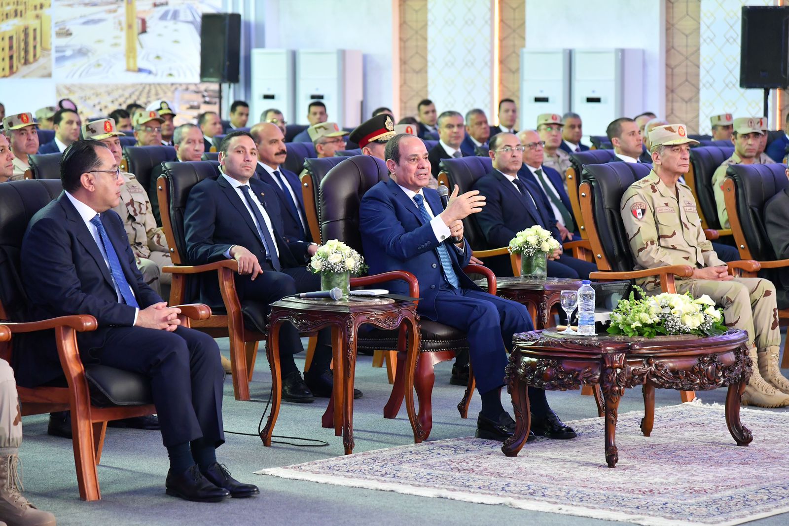 وفي ذلك الصدد، أكد الرئيس حرص الدولة على اتباع أرقى المعايير العلمية والفنية والنفسية والصحية في انتقاء أفضل المتقدمين للوظائف العامة، وإعدادهم وتأهيلهم على جميع المستويات، وفقًا لأحدث وسائل وبرامج التدريب، مشيرًا إلى أن ما تواجهه مصر من تحديات، يتطلب إعداد أجيال وكوادر على مستوى مرتفع من الكفاءة، وكذلك بذل أقصى جهد لإعدادها بما يتواكب مع الخطط الطموحة للدولة لتحقيق التنمية الشاملة والتقدم في جميع المجالات على يد أبنائها من الشباب.