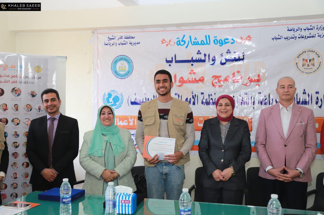 قامت وزارة الشباب والرياضة من خلال الإدارة المركزية لتمكين الشباب الشباب (الإدارة العامة لريادة الأعمال والمشروعات الناشئة)، بتكريم سفراء ومدربين برنامج" مشوارى" بمحافظة كفر الشيخ، والذي يتم تنفيذه بالتعاون مع منظمة اليونيسف، تحت رعاية رئيس مجلس الوزراء.