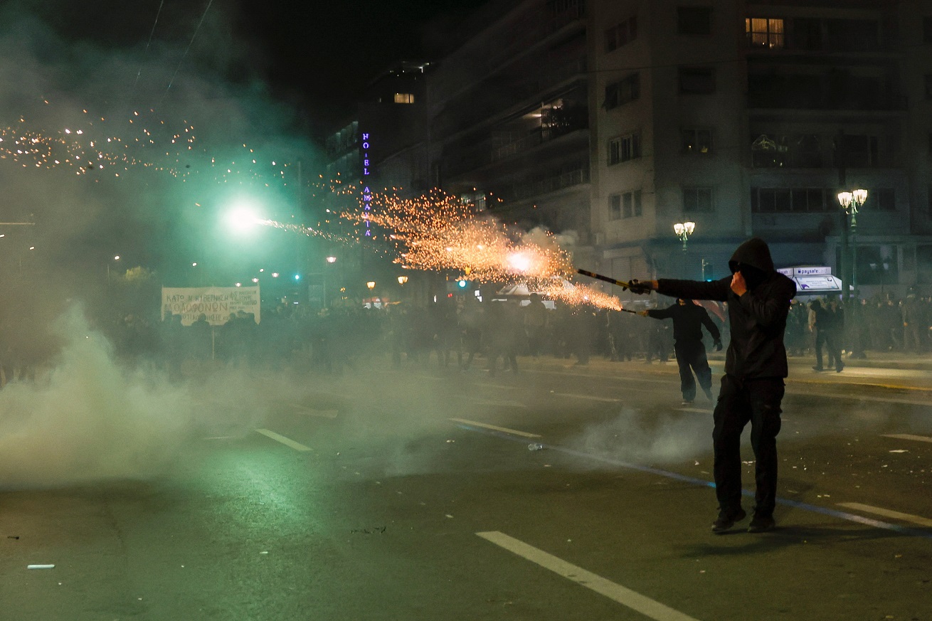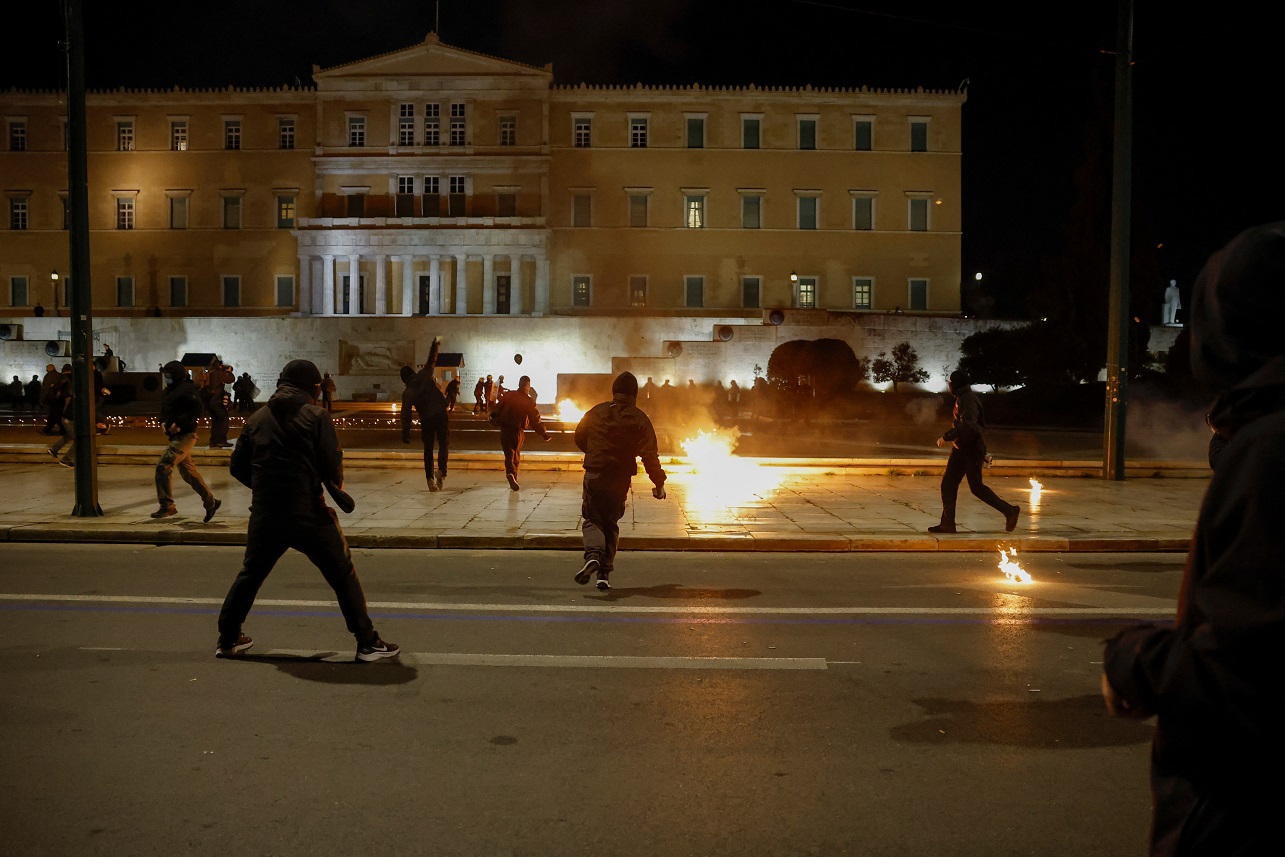 اشتباكات في شوارع العاصمة اليونانية بعد حادث تصادم القطارين (صور)