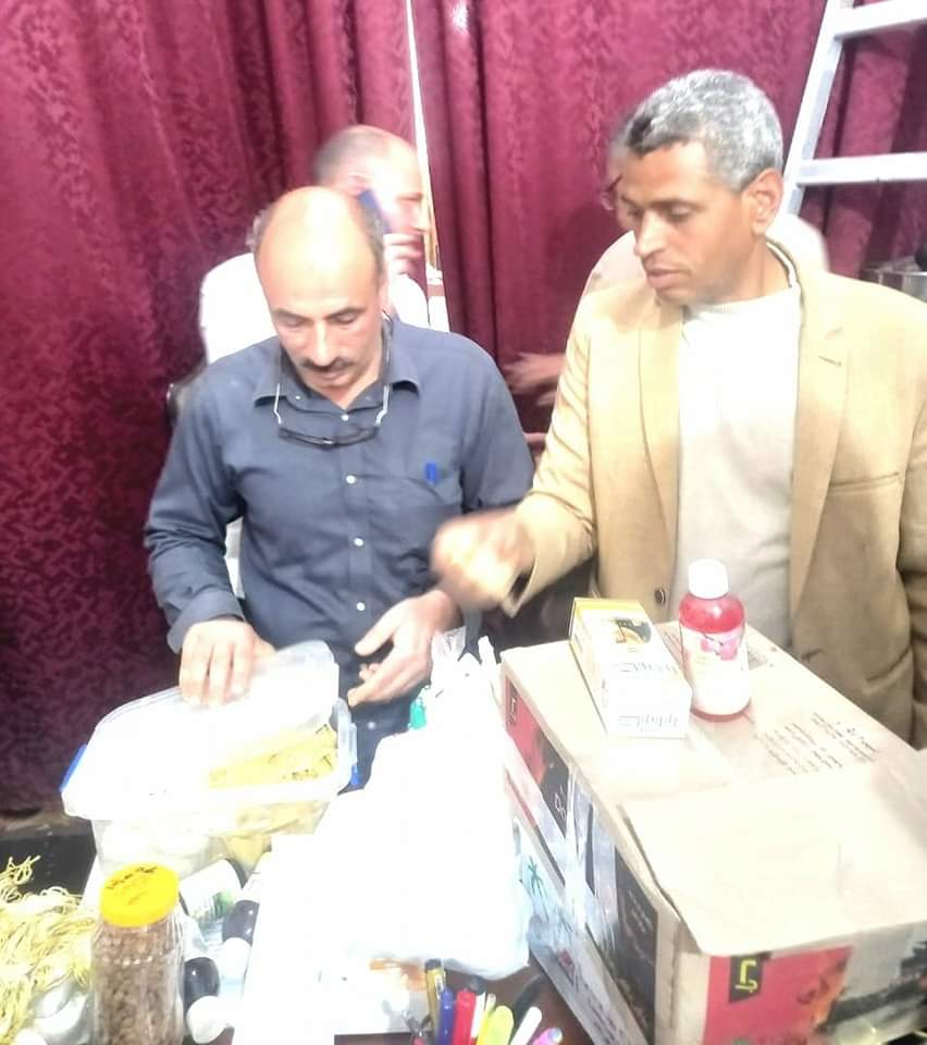 و أسفرت عن ضبط أحد الأشخاص ينتحل صفة طبيب تغذية ويتخذ من محل مقر له مجهز به مكانا للكشف ولافتة مدون عليها أسعار الكشف وبعض الأجهزة المستخدمة في الكشف (حجامة ومطبوعات مكتوب عليه (خلطة علاج السمنة والنحافة) وأكياس مكتوب عليها (خلاصة سم النحل ) وبها سرنجات انسولين ممتلئة ومعدة للحقن).