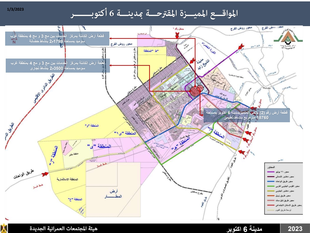 موقع ومساحات أراضي الإسكان المقترحة بالسادس من أكتوبر