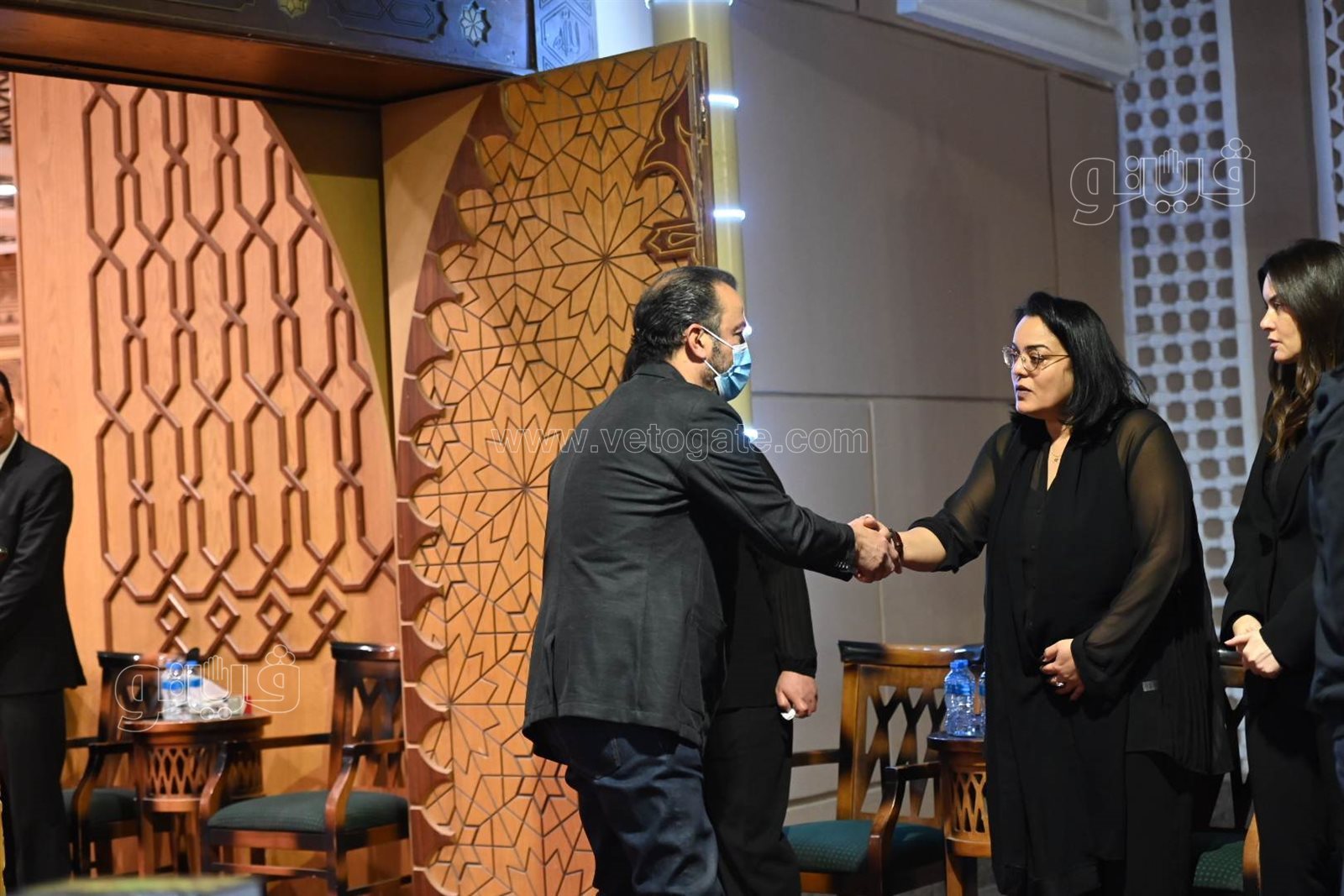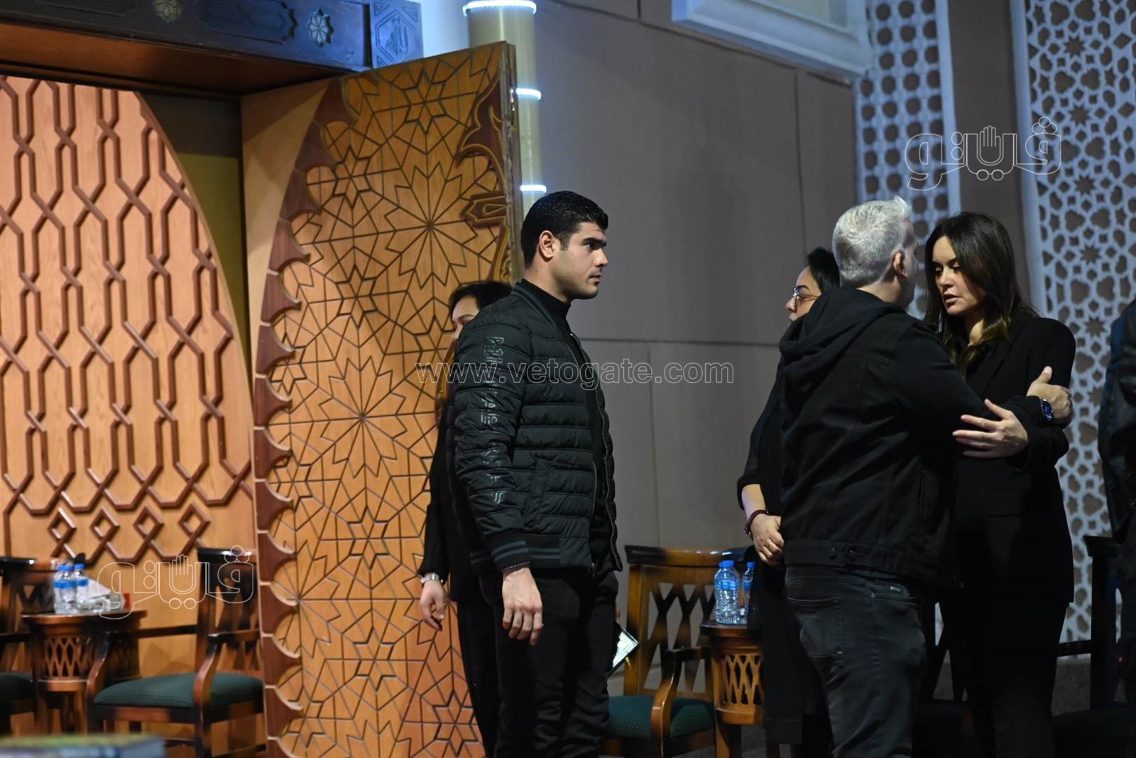 حرص الفنان طارق لطفي والفنانة إنجي المقدم على تقديم واجب العزاء في وفاة والدة الفنانة رشا مهدي، بمسجد الشرطة بمدينة الشيخ زايد.