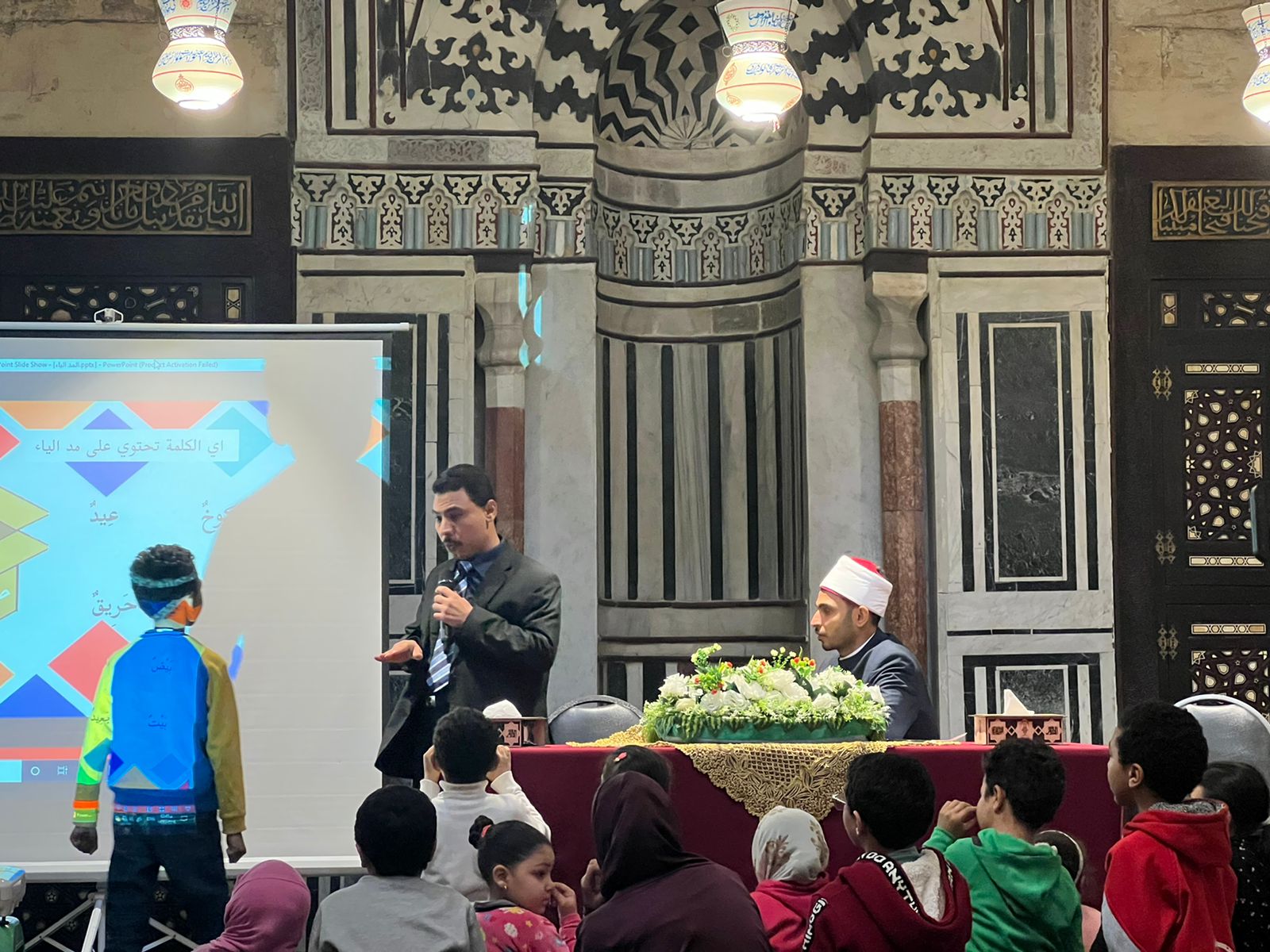 واستمرارا لمواصلة الأزهر الشريف في تنمية مهارات الكتابة والقراءة لدى النشء، تحدث الدكتور محمد عبد المجيد، الباحث بقسم العلوم الشرعية والعربية بالجامع الأزهر، في محور الطفل الفصيح عن"المد بالياء".