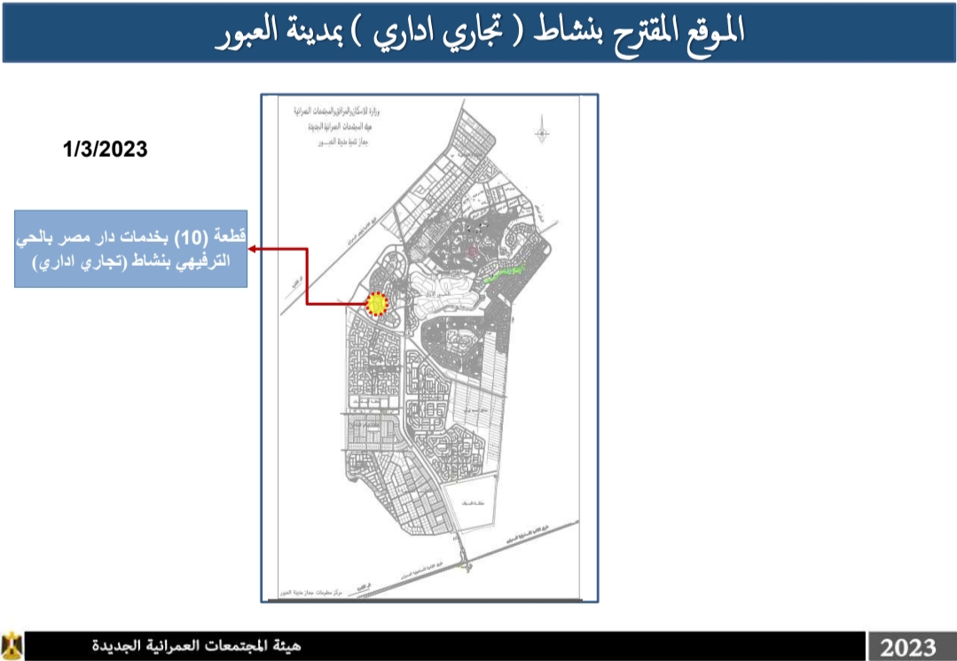 حددت هيئة المجتمعات العمرانية الجديدة قطع الأرض بـ مدينة العبور بنظام التخصيص الفوري بنشاط خدمي كالآتي: