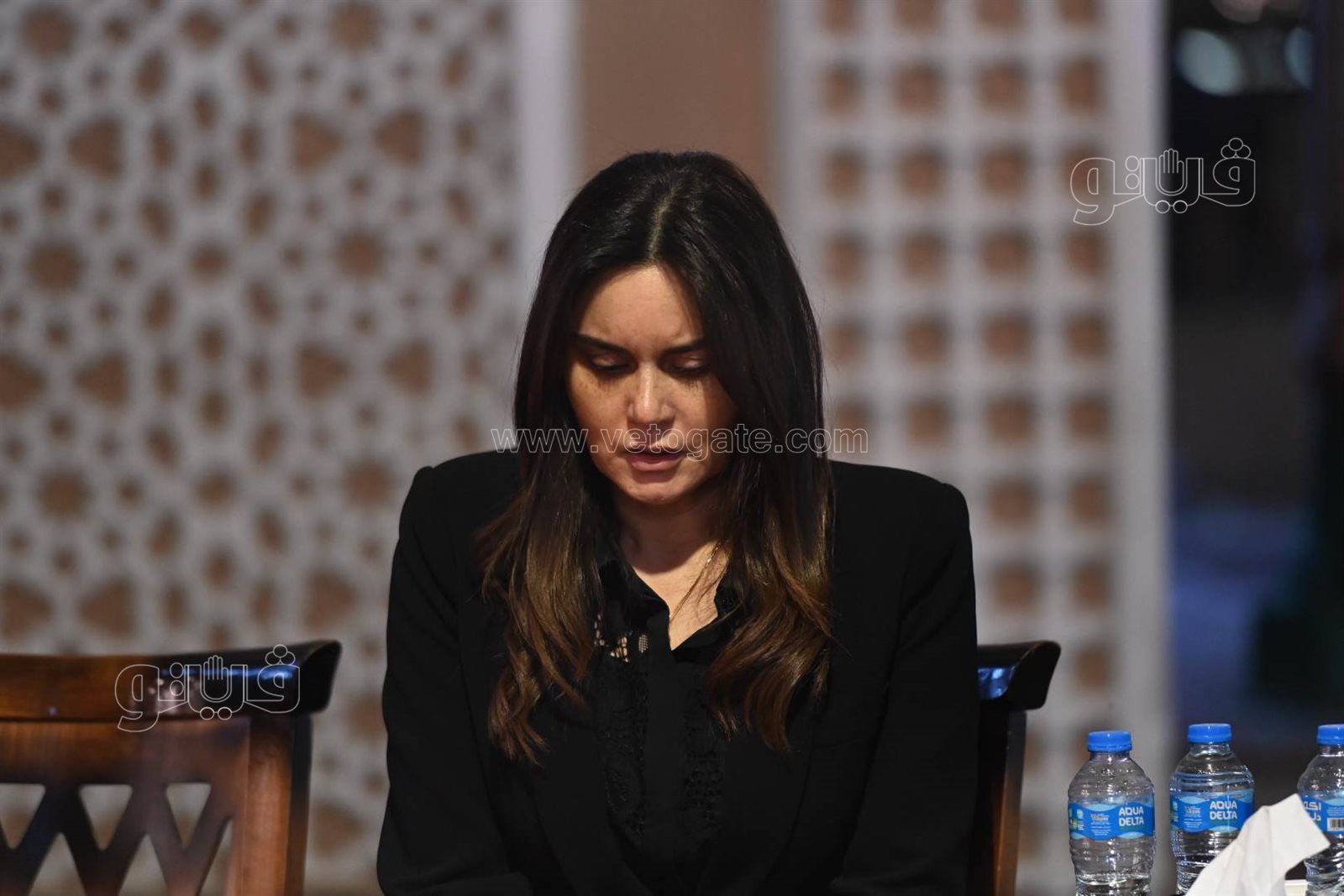 بكاء رشا مهدي أثناء تلقي العزاء في والدتها بمسجد الشرطة (فيديو)