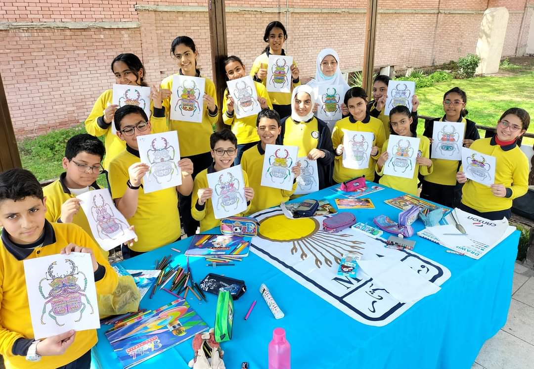 بالاضافة إلى عمل ورشة "رسم وتلوين" من خلال تدوير الخامات، وارتداء الأزياء الفرعونية والتقاط الصور التذكارية.