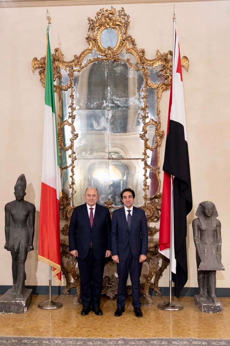 استقبل السفير بسام راضي سفير مصر في إيطاليا مؤخرا بالعاصمة الإيطالية روما الفريق أسامة عسكر رئيس أركان حرب القوات المسلحة المصرية الذى قام بزيارة إيطاليا على رأس وفد عسكرى رفيع المستوى خلال الفترة من ٢٨ فبراير إلى ٢ مارس بدعوة من قائد قوة القيادة الأمريكية الأفريقية "افريكوم" لحضور فعاليات المؤتمر الحالى لرؤساء أركان الدول الأفريقية.