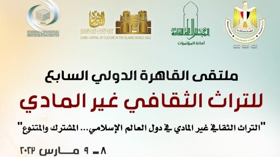 ضمن برنامج وزارة الثقافة، لختام أنشطة وفعاليات اختيار "القاهرة عاصمة ثقافة دول العالم الإسلامي 2022"، يستضيف المجلس الأعلى للثقافة، الدورة السابعة من ملتقى "القاهرة الدُولي للتراث الثقافي غير المادي"، التي تحمل اسم الدكتور "أحمد مرسي"، بعنوان "التراث الثقافي غير المادي في العالم الإسلامي.. المُشترك والمتنوع"، وذلك في العاشرة والنصف صباح الأربعاء 8 مارس الجاري، وعلى مدار يومين.