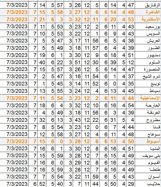مواقيت الصلاة اليوم القاهرة والمحافظات
